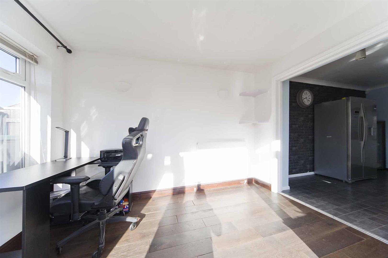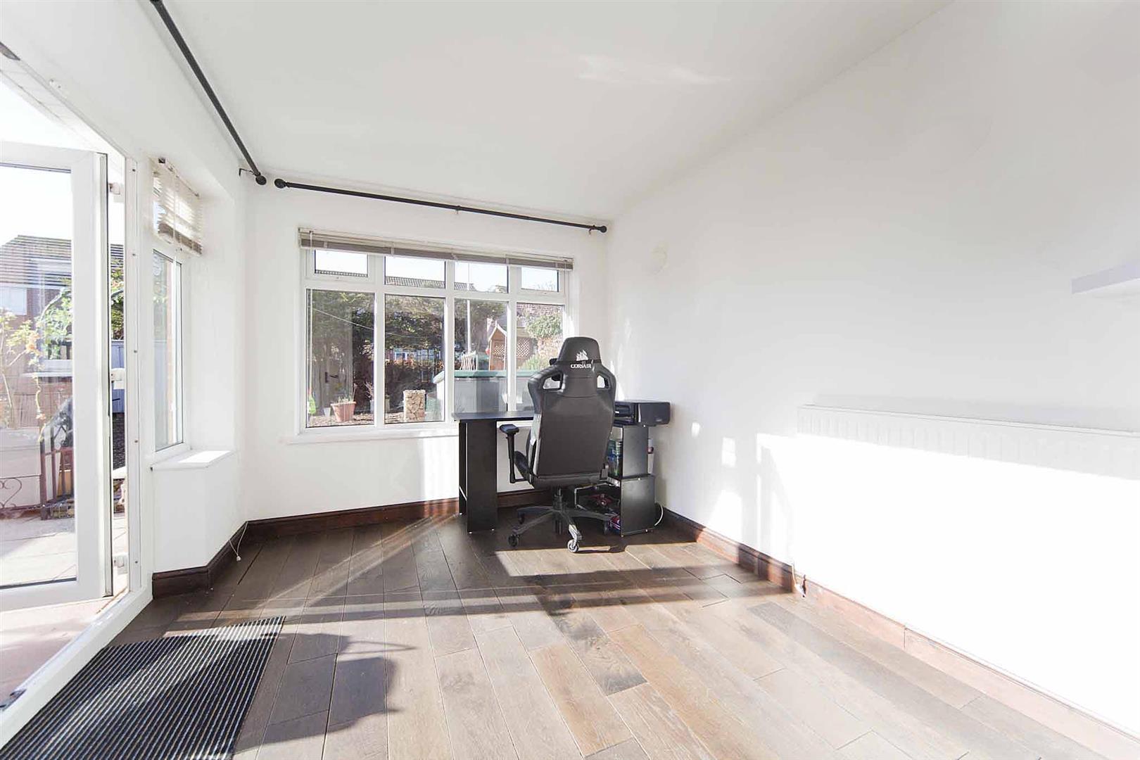 Conservatory extension with French doors which lead to the rear garden, pristine decor, laminate flooring.