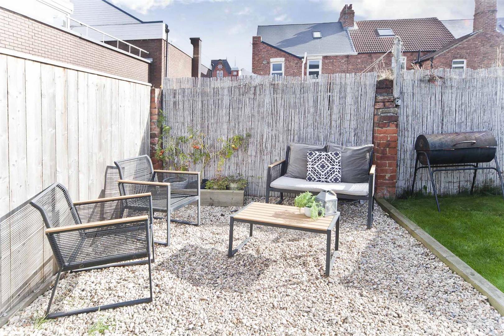To the rear is an enclosed lawned garden with patio and shingled area.