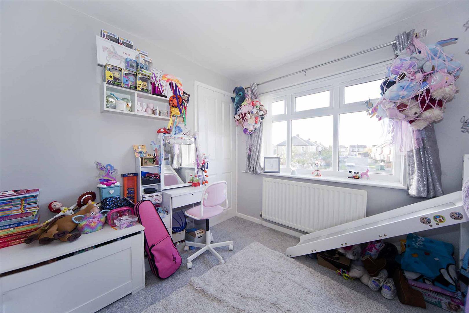 Bedroom two is a double with front elevation window, fitted storage, modern decor.
