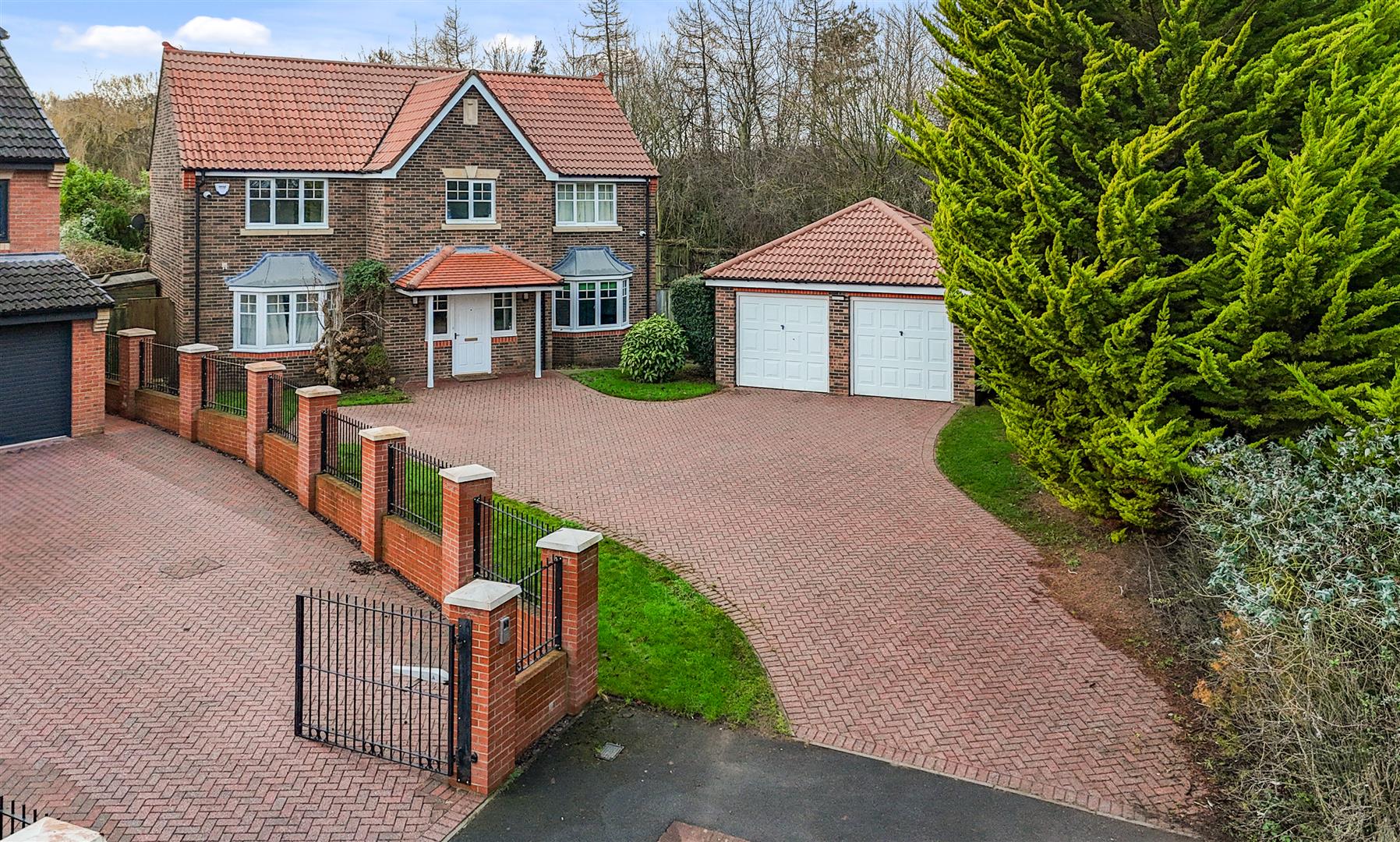 Impressive facade, substantial plot, sweeping block paved driveway for several vehicles to detached double garage, well tendered lawns and mature shrubbery/ trees, rear access gate, additional direct access gate to a public footpath, front door with canopy over into;