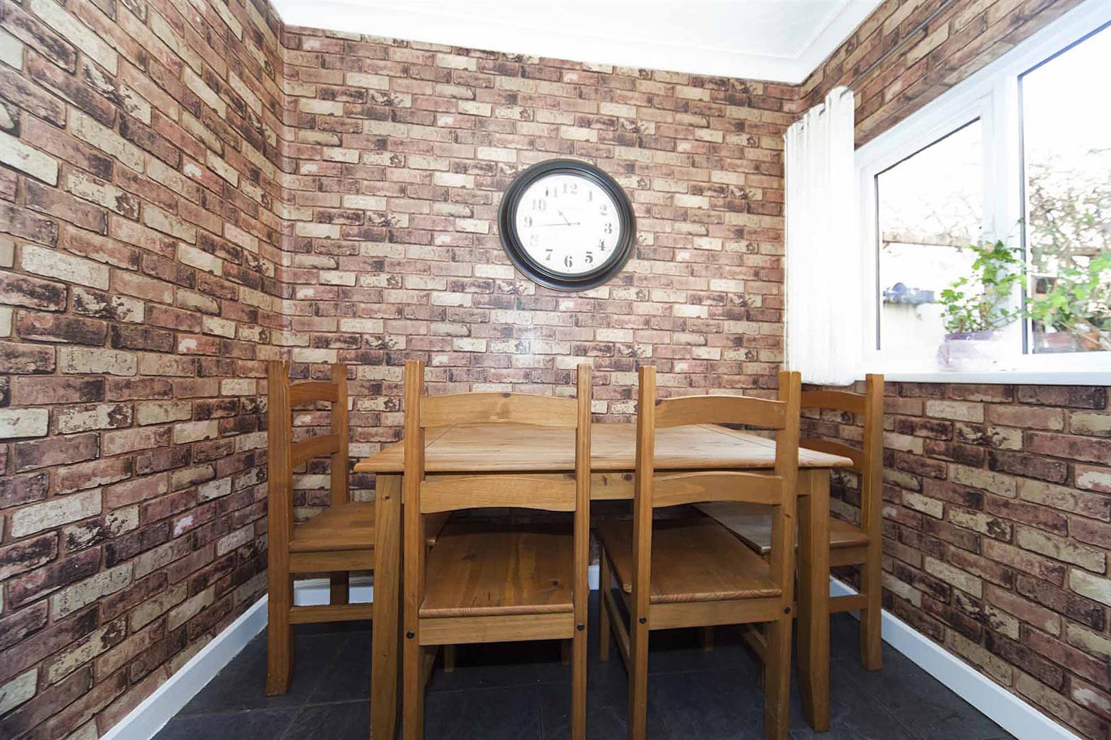 Dining room/second sitting room with window to the rear, feature fire surround with gas fire, decorative coving, modern colour scheme.