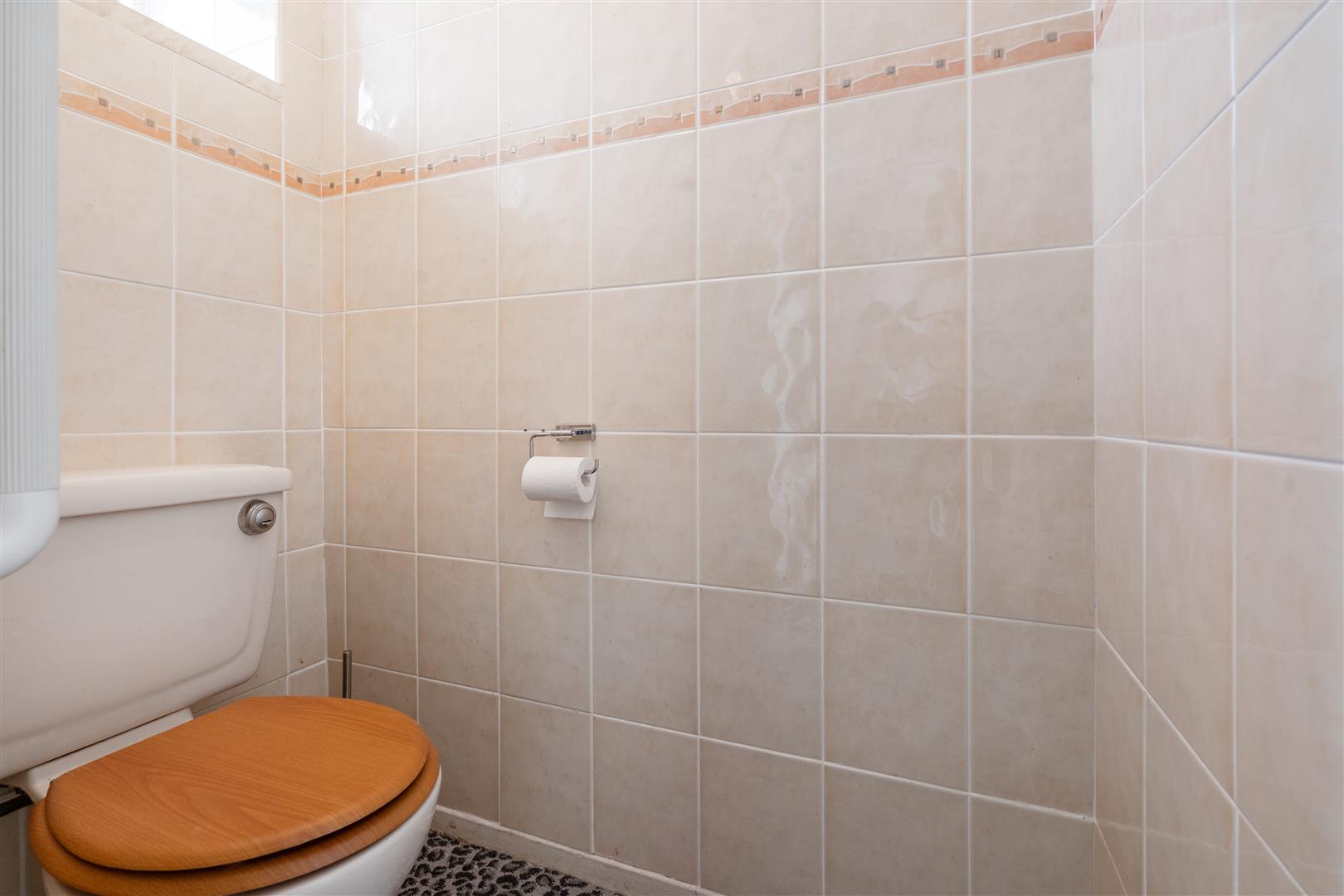 Sunny conservatory with a single door opening to the rear garden, fitted storage cupboard, tiled floor, fitted blinds.