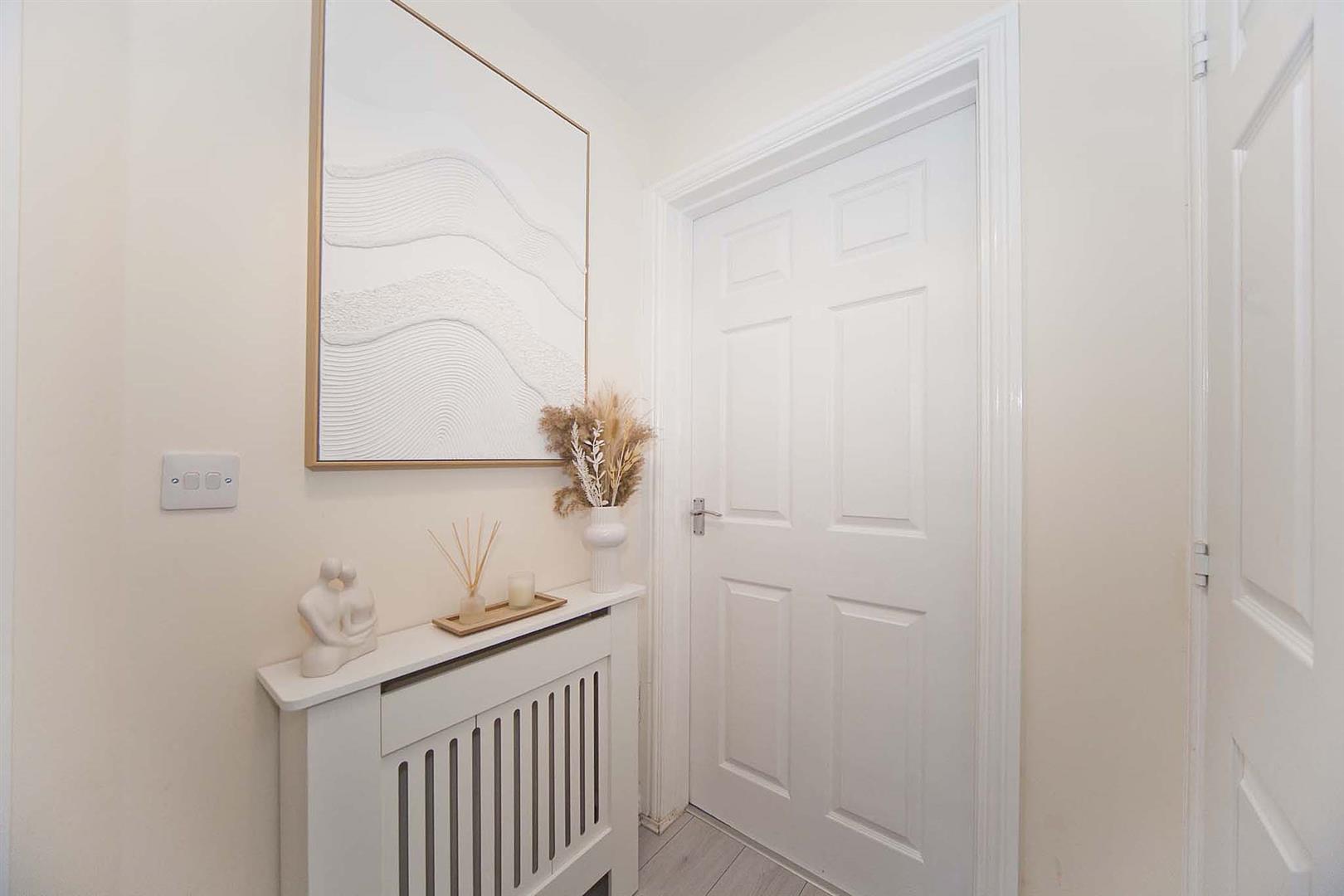 To the rear there is an enclosed landscaped garden with artificial turf and Indian sandstone patio.