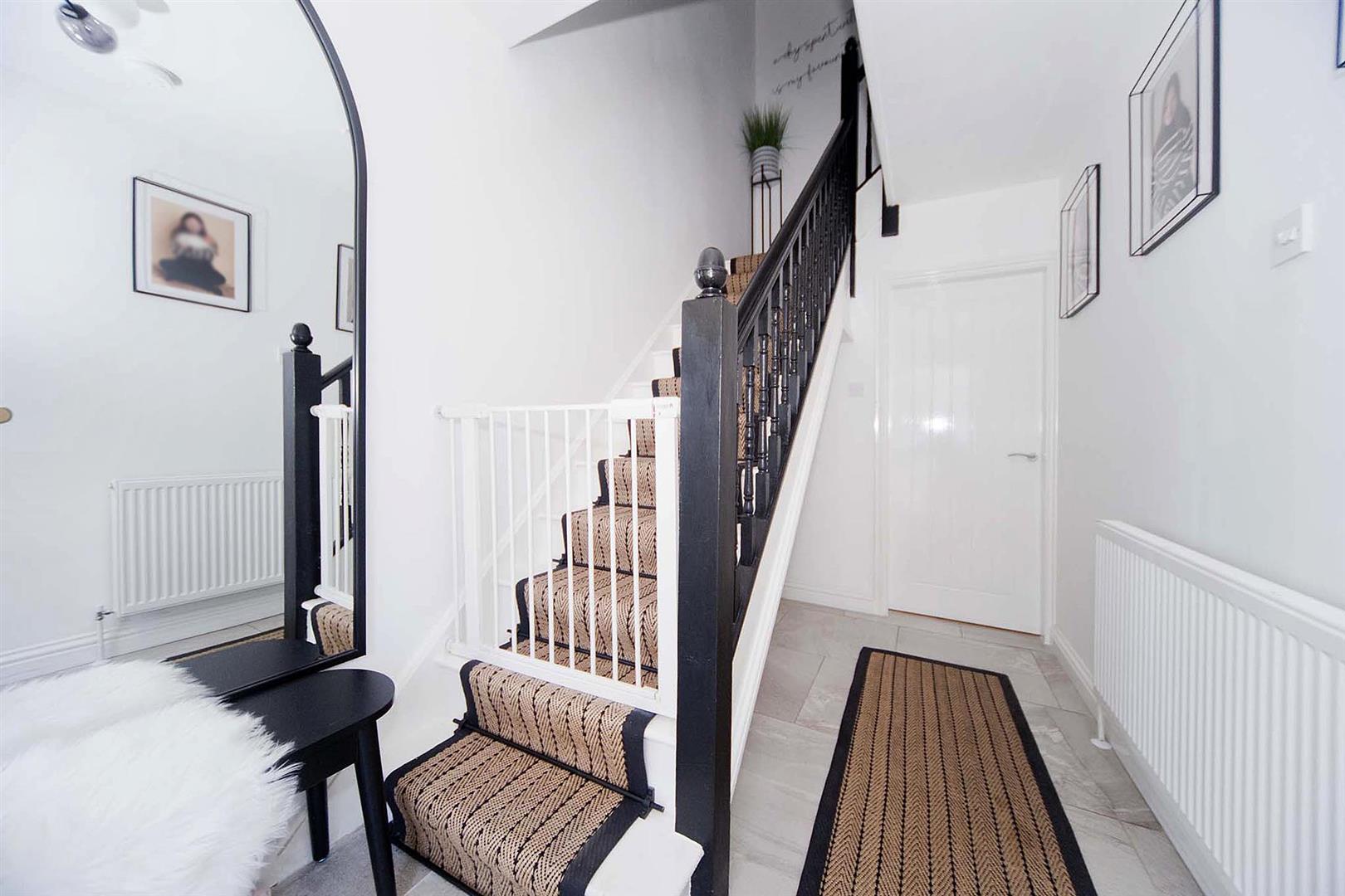 Inviting entrance hall with stairs to the first floor, tiled flooring, immaculate decor.