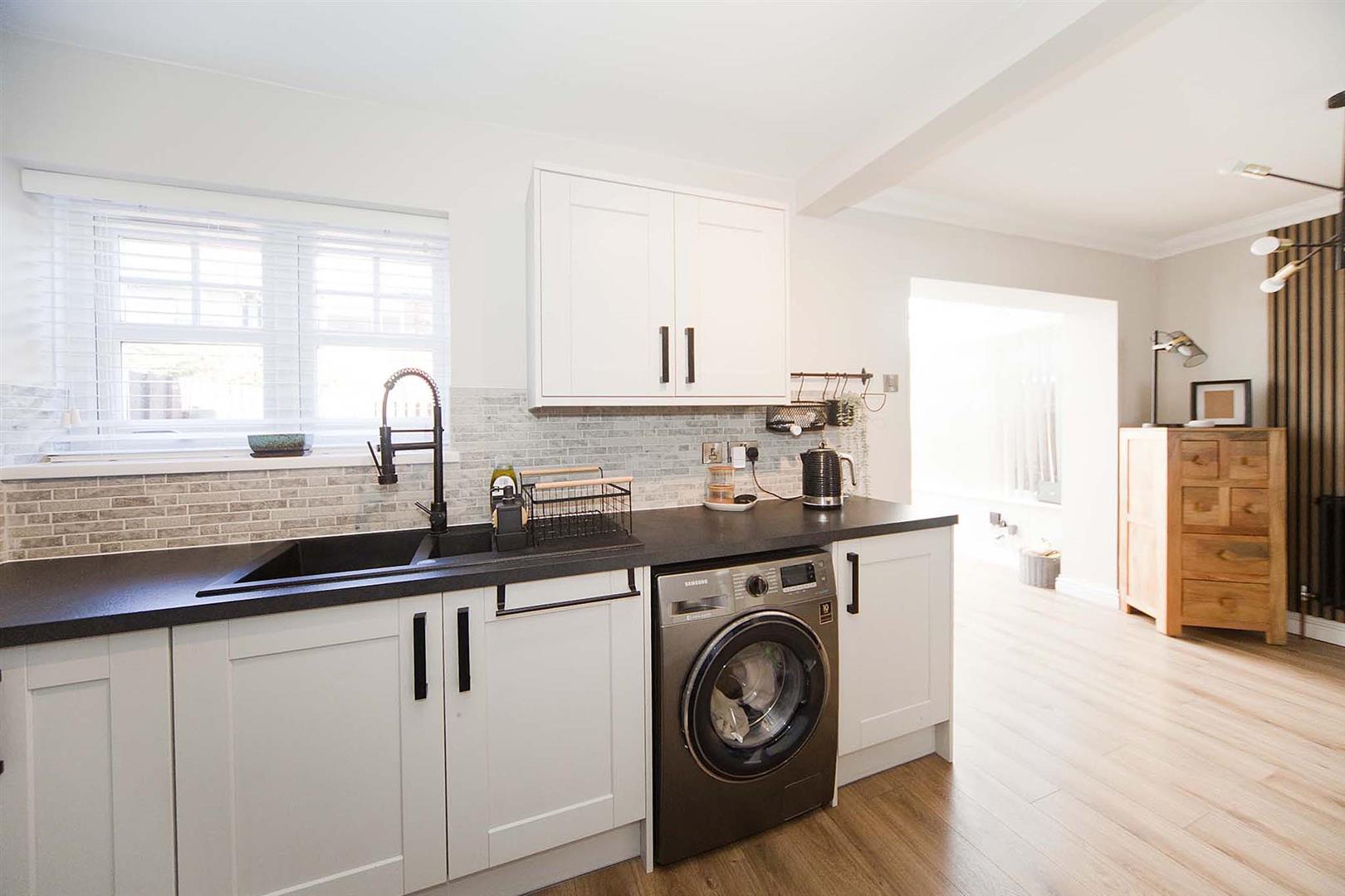 Excellent kitchen recently fitted with a selection of shaker style wall, base and drawer cabinets, complimentary surfaces, stylish tiled backsplash, inset sink with American style jet swivel mixer tap, plumbing for washing machine, integrated double oven, integrated hob, integrated extractor, laminate flooring.