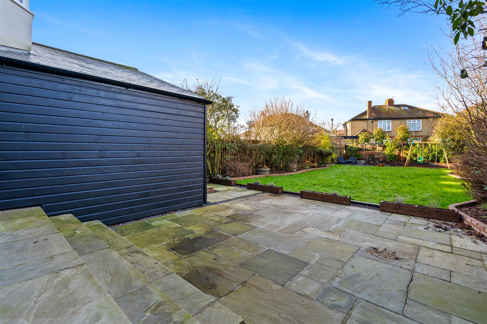 To the rear is an enclosed huge garden with patio and is laid to lawn, established trees and mature shrubbery, shingled and play areas.