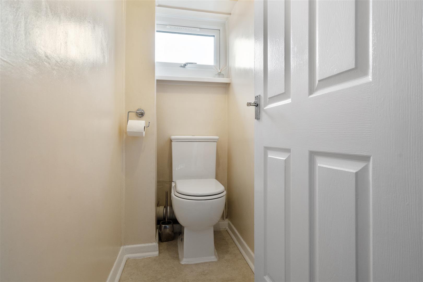 The family bathroom comprises bath, over bath shower, glass shower screen and vanity wash basin, complimentary panelling.