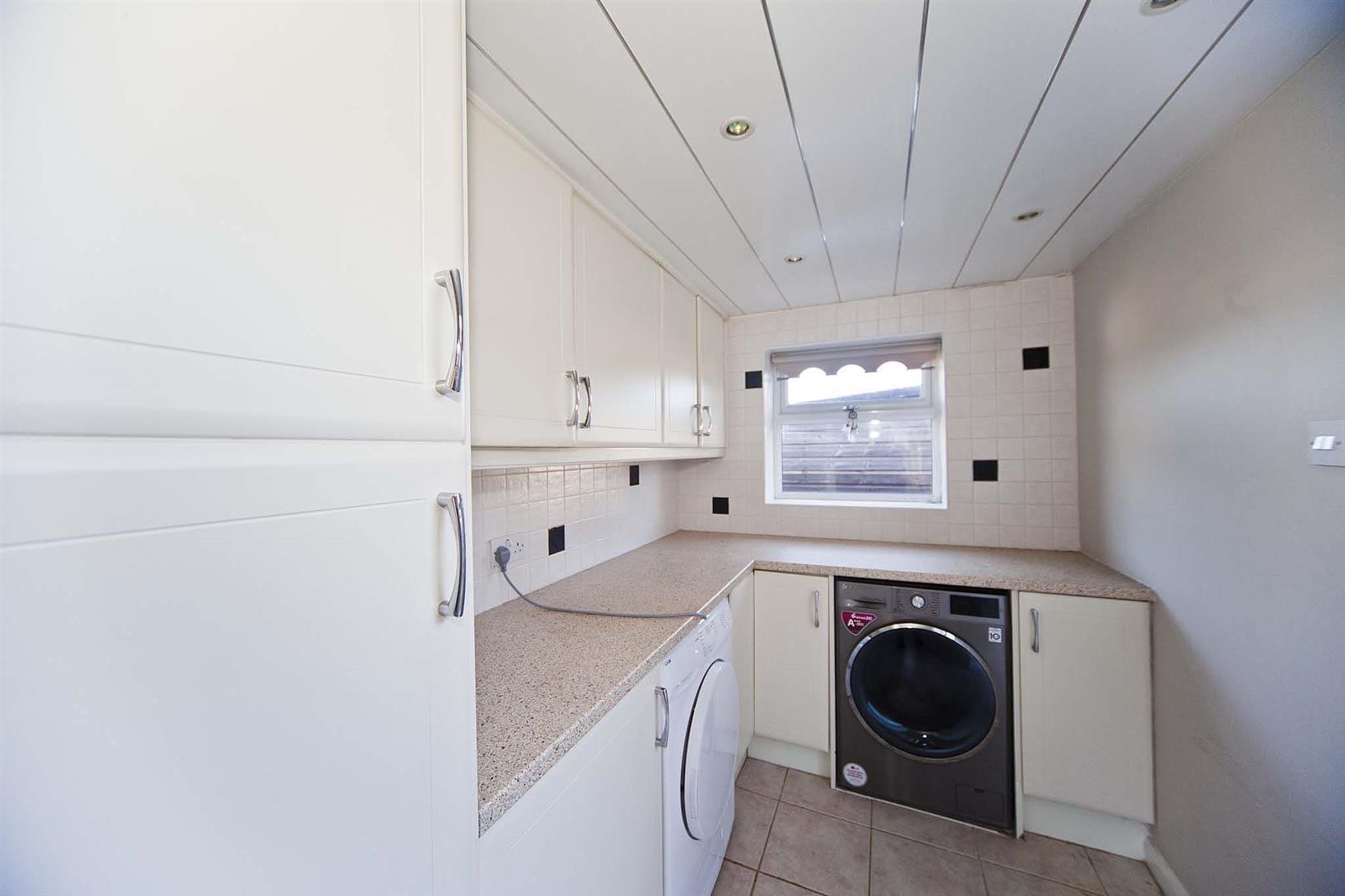 Useful utility room with plumbing for washing machine, space for dishwasher, fitted with wall, base and larder units in keeping with the kitchen, complimentary surfaces, tiled floor, space for fridge freezer, half glazed rear access door.