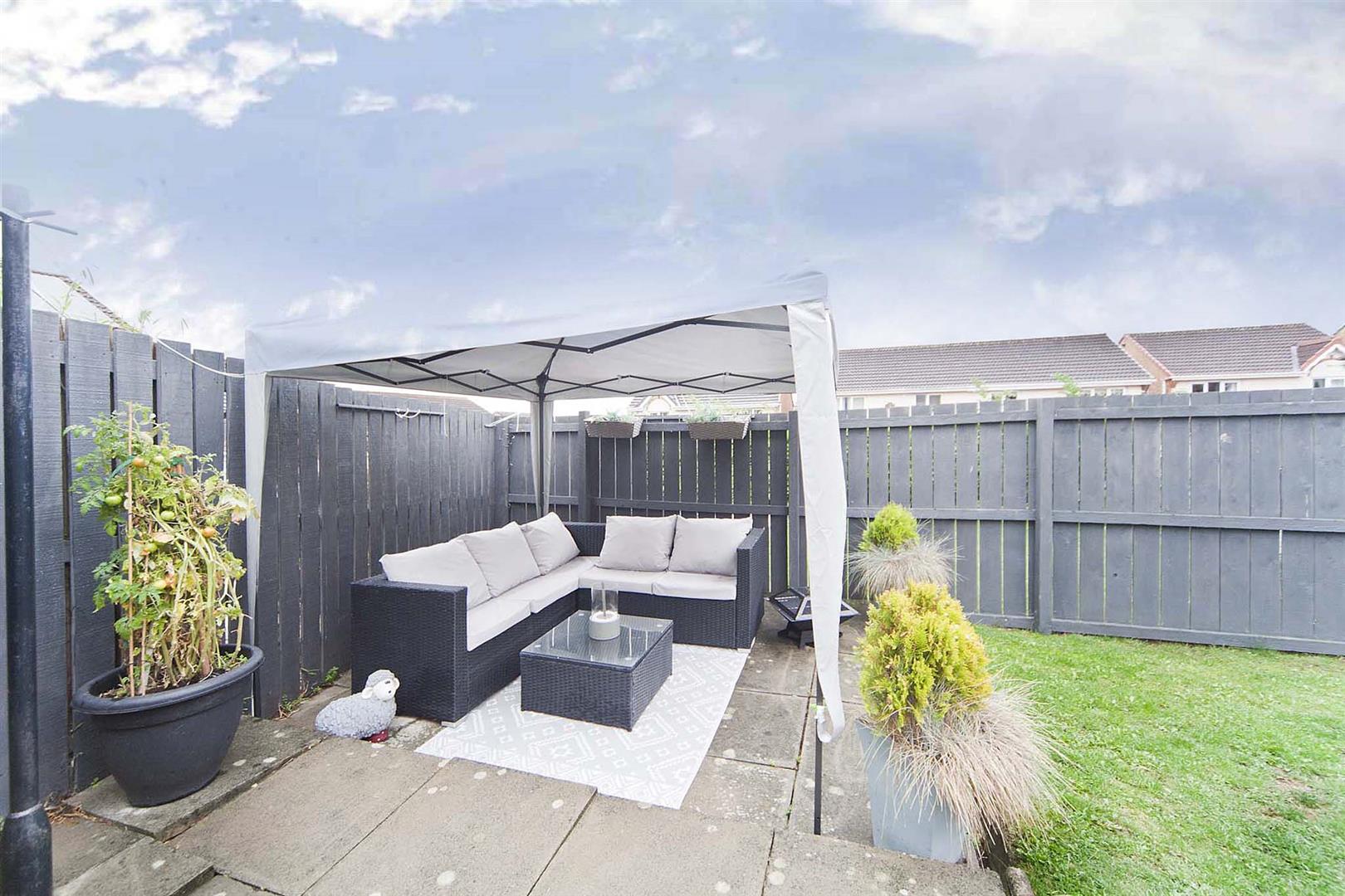 To the rear is an enclosed garden laid to lawn with patio areas.