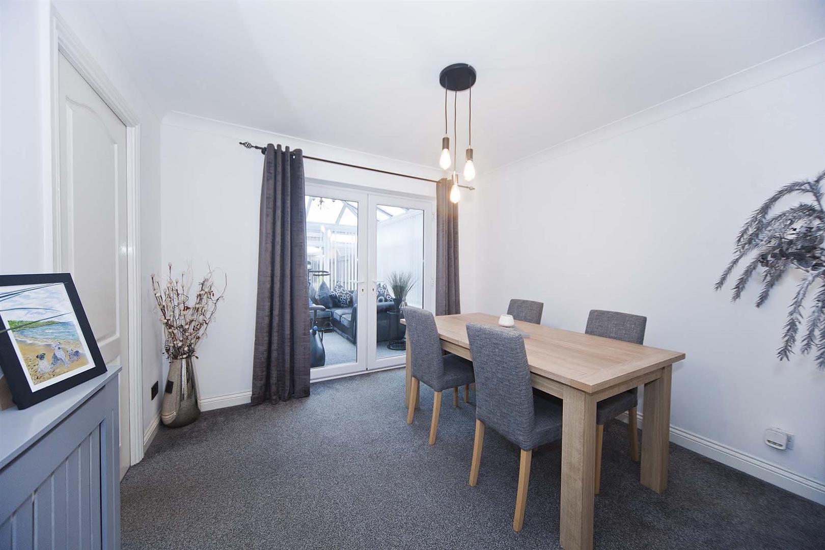 Sunny conservatory benefitting from French doors which lead into the garden, fitted blinds.