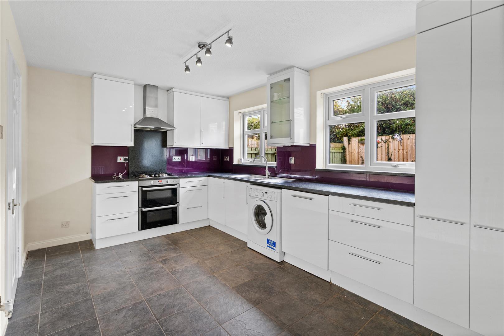 Upon entering the property, you are met with an entrance hall immediately leading into the large open plan lounge/dining room providing a tranquil space in front of the electric fire for quiet moments or lively conversations. The clever and modern media wall sits in the lounge with recessed space perfectly fitting the TV which will be left. Further on is the conservatory with its large glass windows that flood the room with natural light. Connected seamlessly, the lounge flows into an interconnected kitchen which is fitted with wall & base units, granite worktops providing for ample cooking space, integrated dishwasher as well as washing machine that can be included. Just off the kitchen lies an inner hallway providing access into the WC and garage.