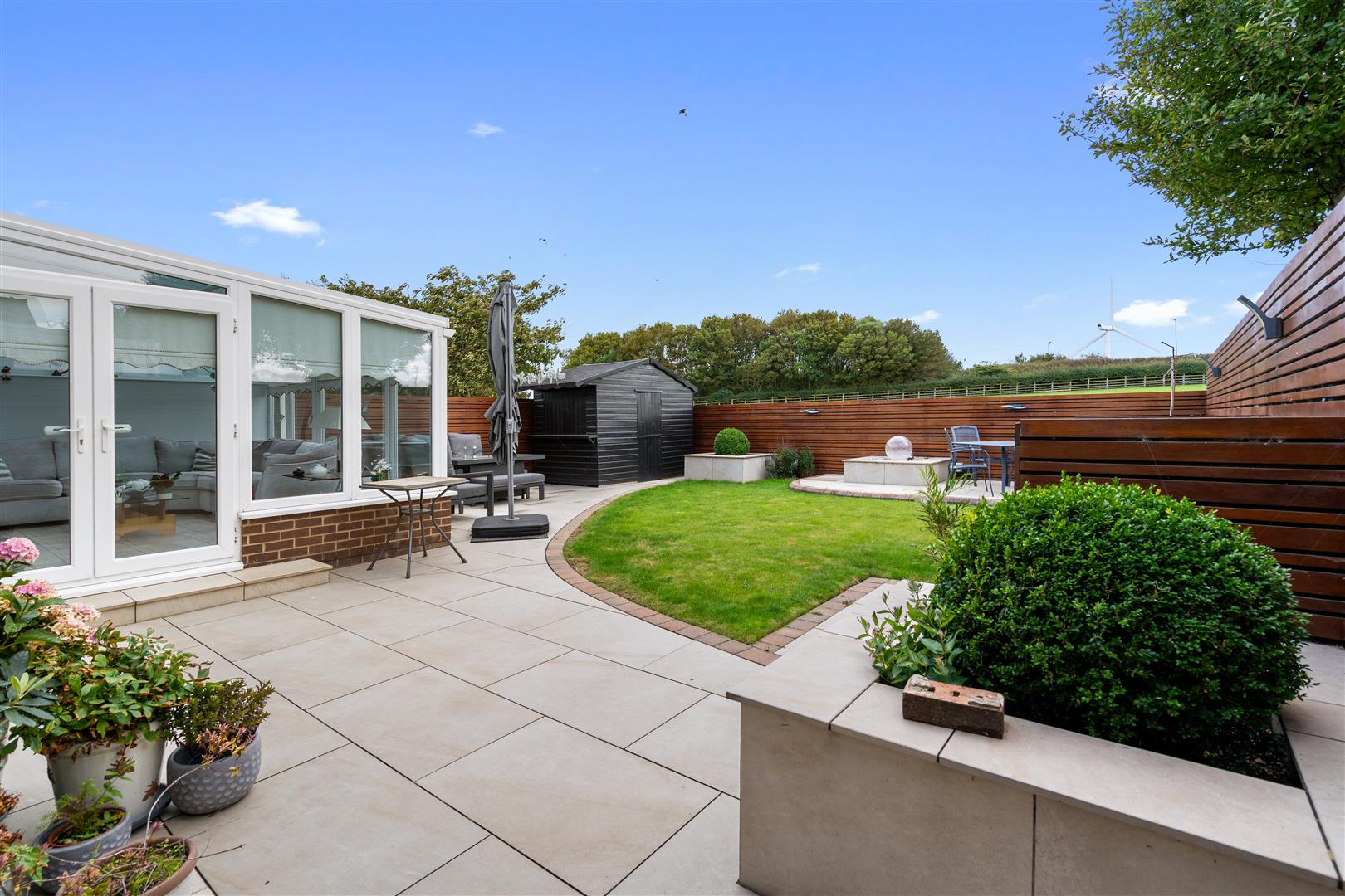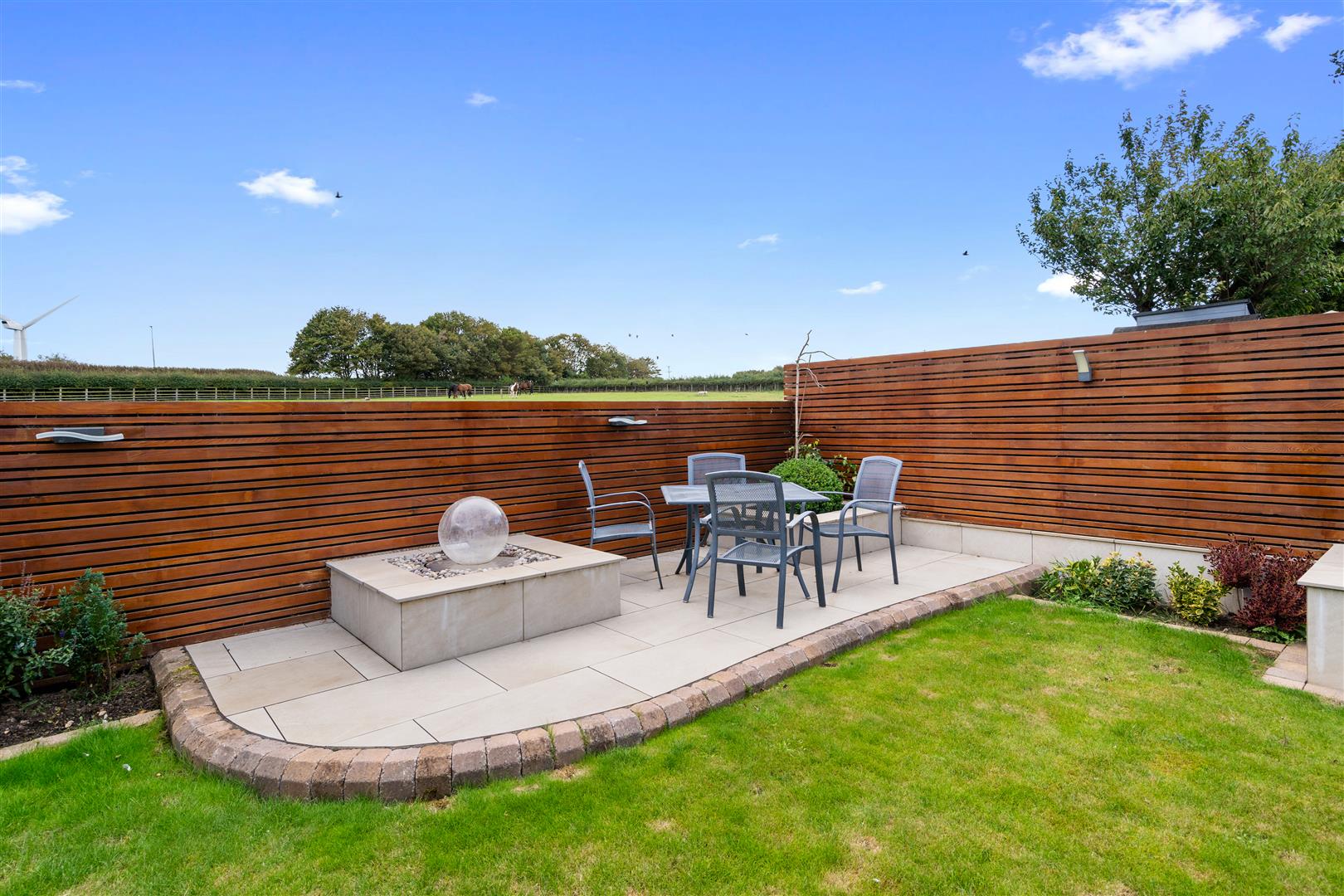 To the rear is an enclosed recently landscaped garden laid to lawn, with garden shed, raised planters, water feature, Italian patio tiles, home bar, with breathtaking countryside views overlooking fields.