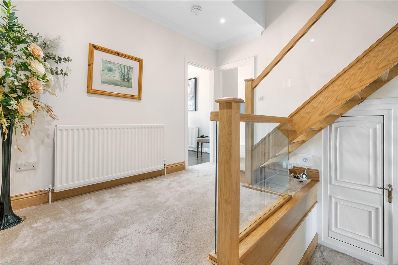 Entrance hall with bespoke oak and glass stairs to the first floor, impeccably presented.
