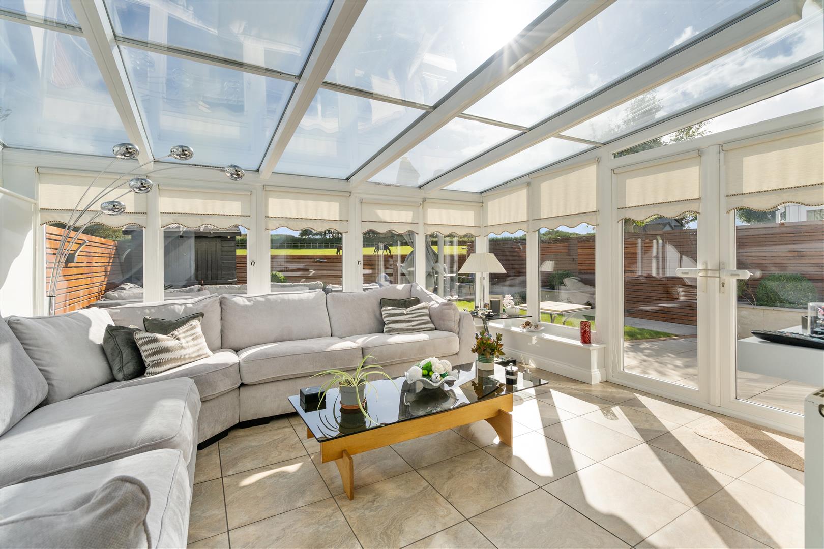 Sunny conservatory with French doors opening to the garden, Italian flooring, under floor heating, fitted blinds.