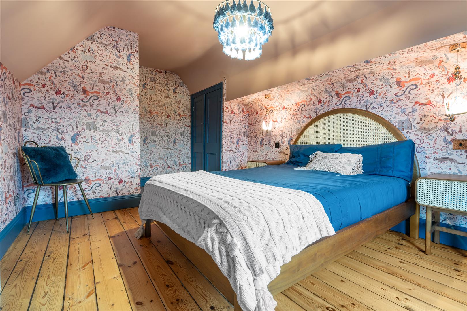 Bedroom six is another generous room with exposed floorboards, delightful decor.
