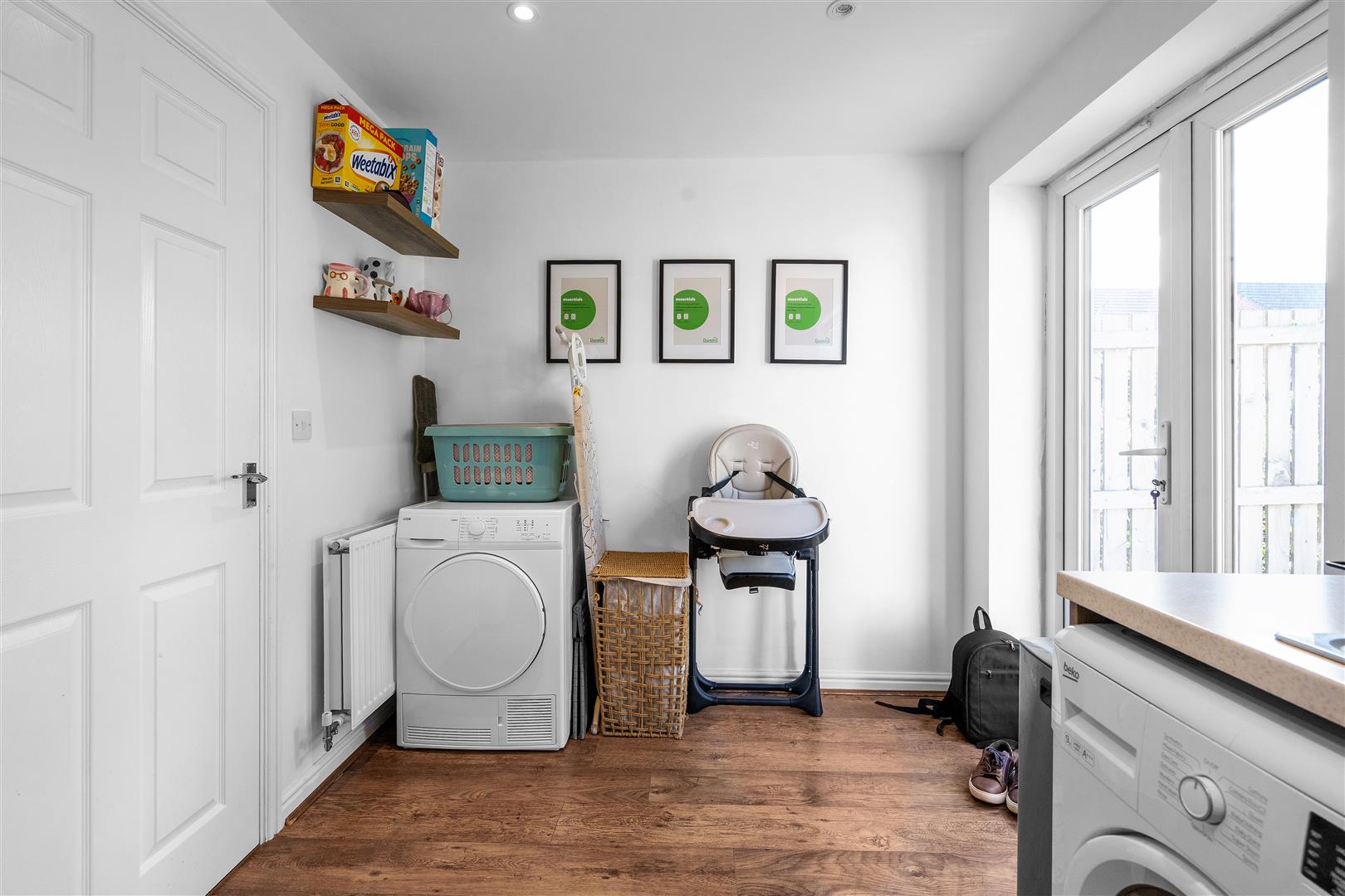 Dining/kitchen fitted with a superb range of wall, base and drawer cabinets, complimentary heat resistant surfaces, stylish modern tiling, integrated gas hob, integrated electric oven, plumbing for washing machine, integrated fridge freezer, plumbing for washing machine, well presented dining area with double doors overlooking the rear garden, ample space for dining table and chairs.
