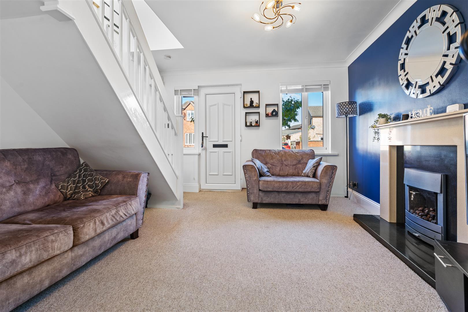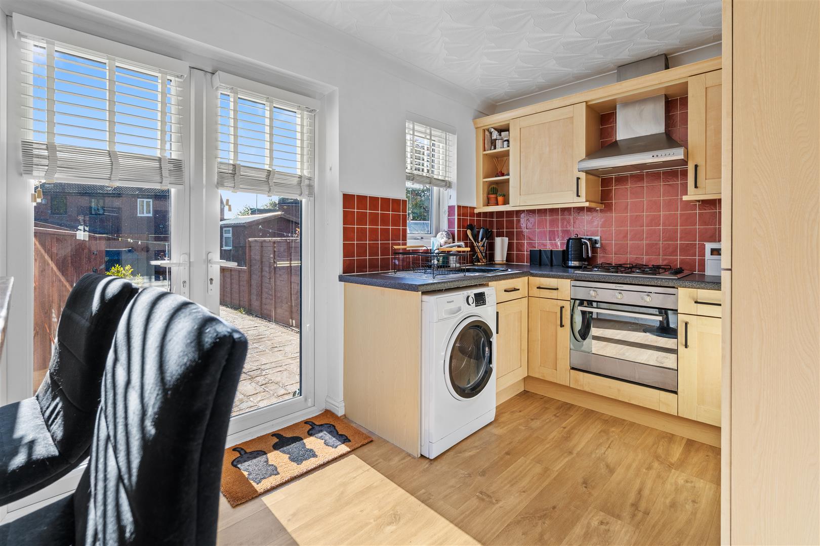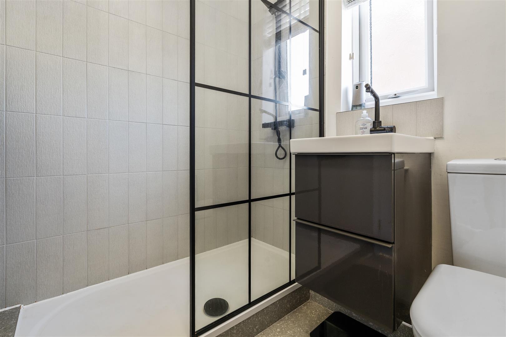 To the first floor, you'll find two spacious double bedrooms, the master of which benefits from large fitted wardrobes and a family bathroom comprising of a modern large walk-in shower, WC and wash basin. Externally, the rear patio garden boasts a generous size, fully enclosed with a Southern aspect. To the front the driveway is situated to the side of the property providing for off street parking.