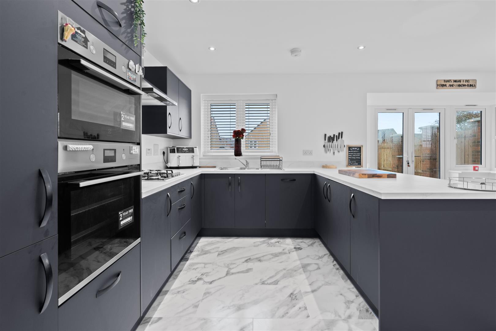 The integrated kitchen is a highlight of the home, designed for both functionality and style, making it a delightful space for culinary enthusiasts. The large rear garden offers a private outdoor retreat, ideal for summer gatherings or simply enjoying the fresh air.