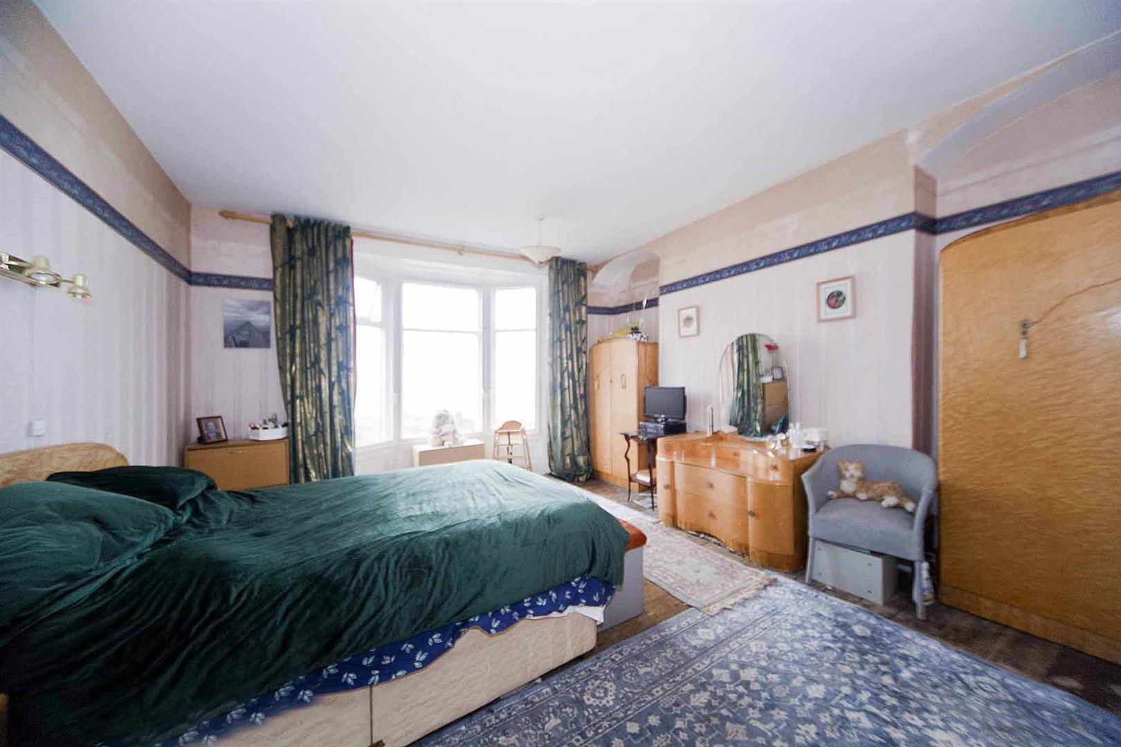 Bedroom one is a spacious double with bay window to the front elevation, neutral decor, wall lights, exposed floorboards.
