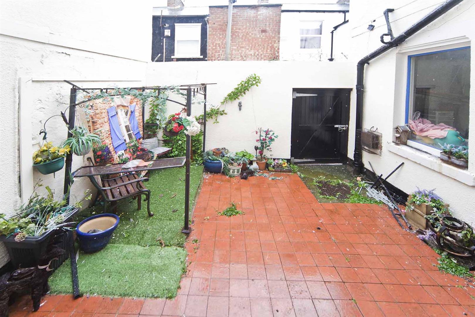 To the rear is an enclosed tiled courtyard with brick built shed and gated access.