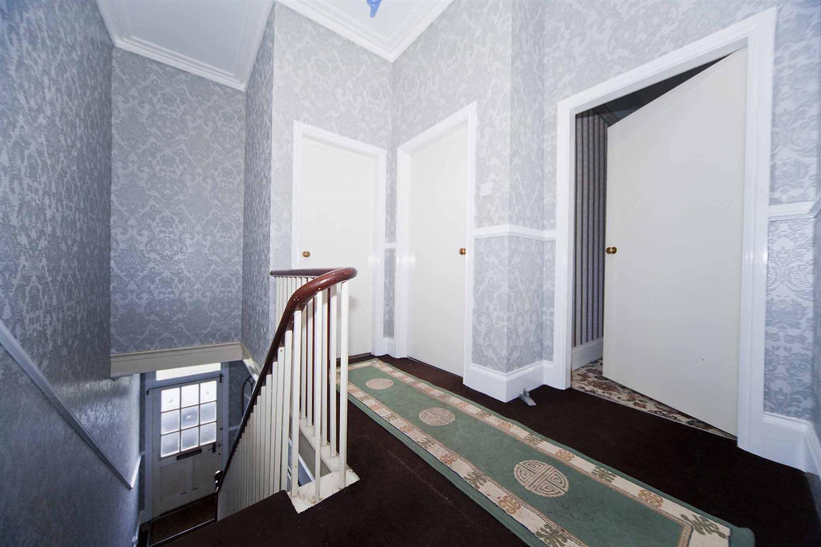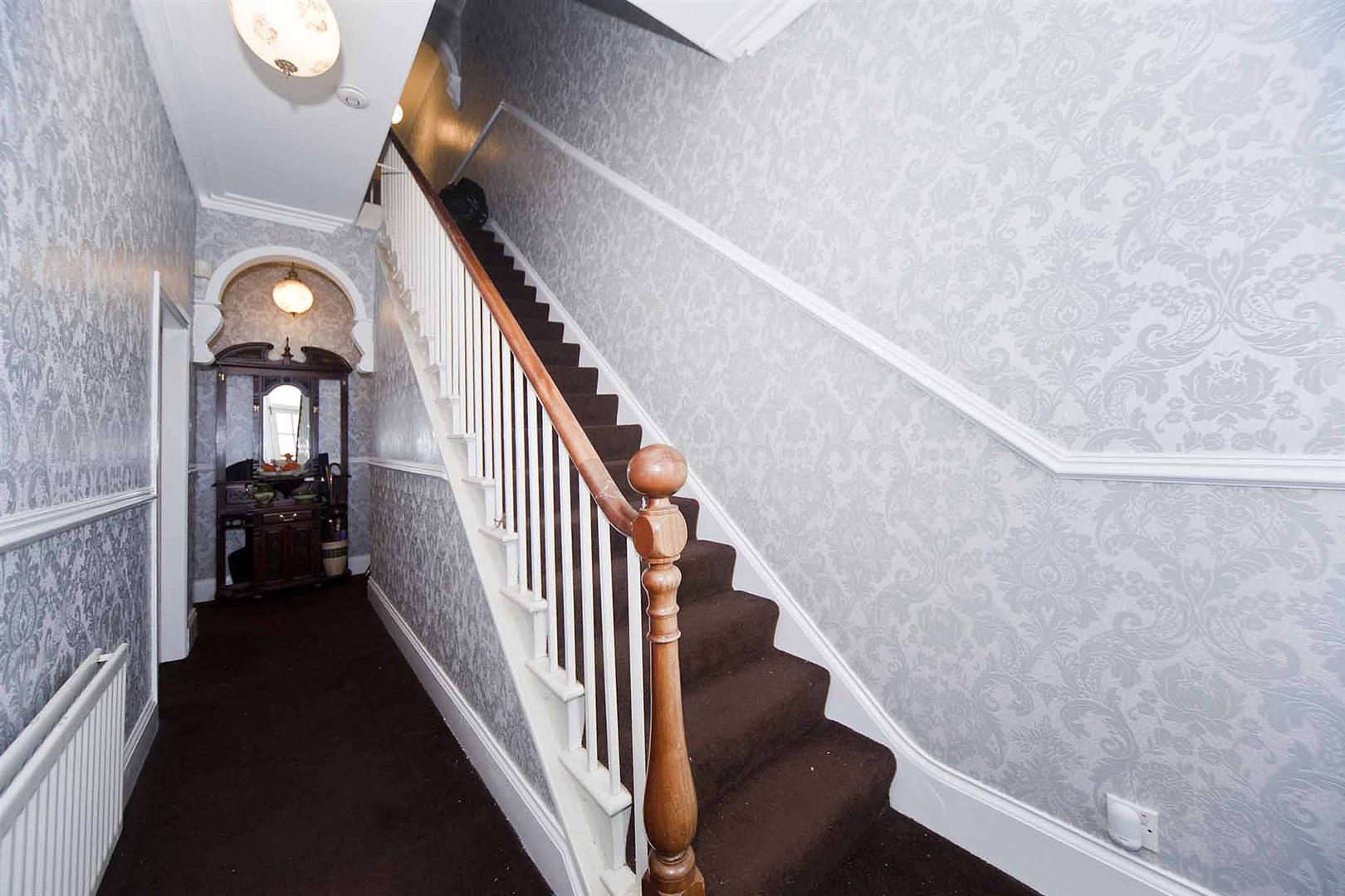 Entrance hallway with original stairs to the first floor accommodation, under stairs storage cupboard, dado rail, decorative coving, stylish decor.