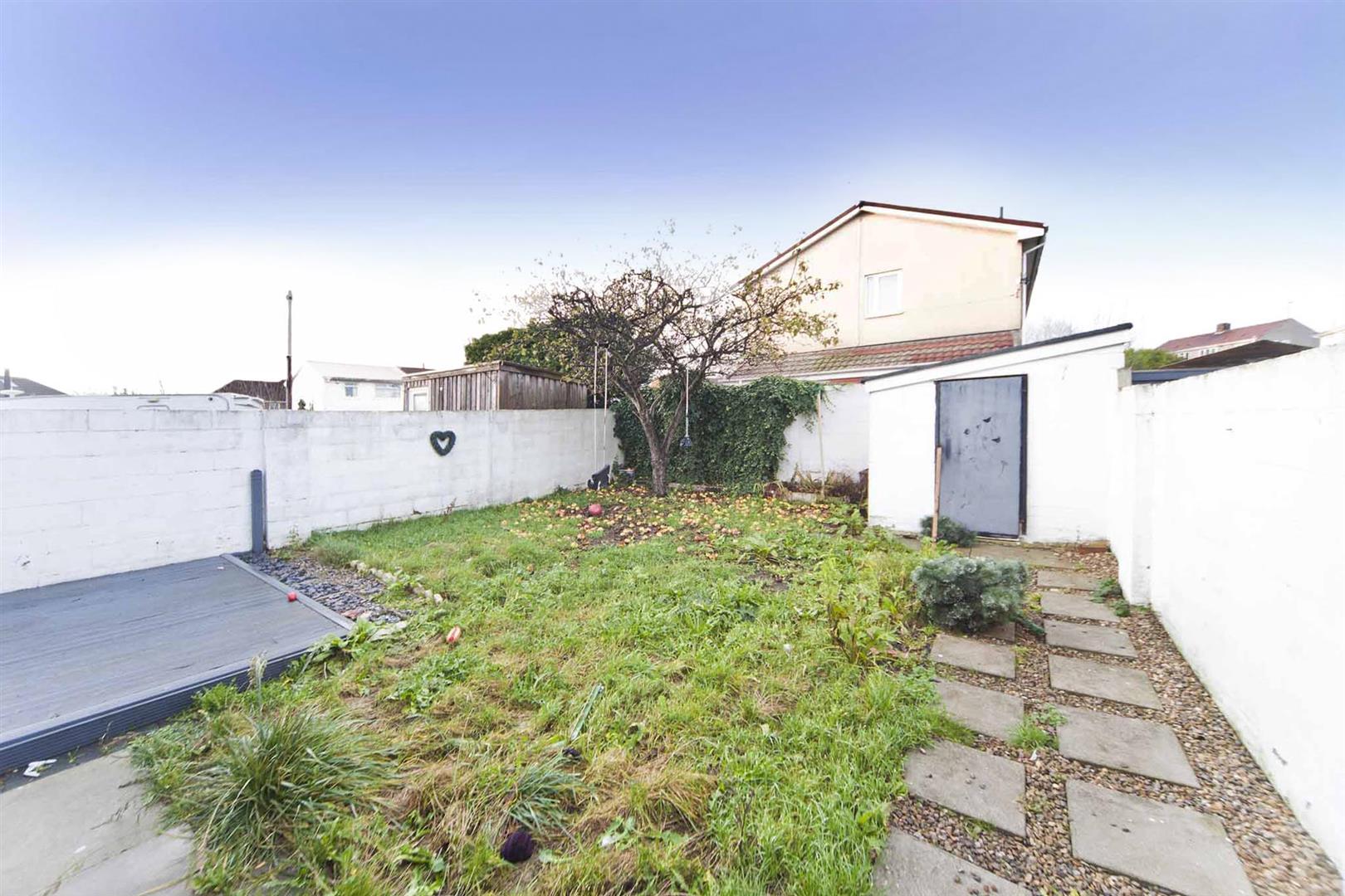 To the rear is an enclosed garden laid to lawn with patio, decking established tree, garden shed.