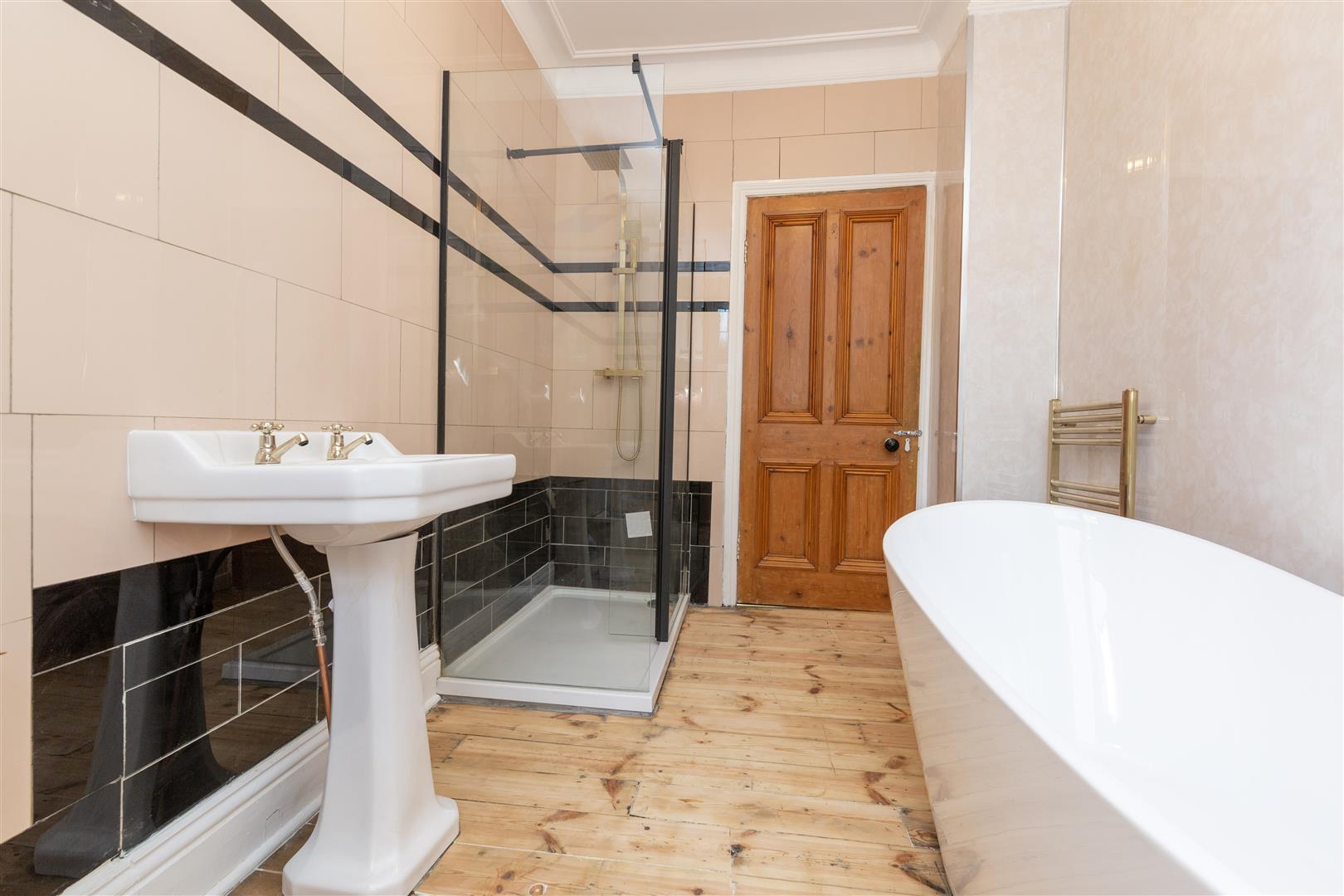Imposing facade, nestled within the generous wraparound plot with idyllic, oasis South facing garden, featuring lawns and mixed borders aswell as a pergola and summerhouse, enabling you to enjoy the outdoor space in all weathers, a driveway with right of way leads to ample parking and the separate double garage with electric roller door and security light, pathway leading to impressive front door entrance, through imposing large door into; Entrance hallway with high ceilings, imposing wooden balustrade staircase to first floor, polished wooden floor, and clean neutral décor with decorative coving, deep skirtings and picture rail, windows frame the entrance door, flooding the hall with natural light, radiator and traditional wooden doors into; Stylish lounge of generous proportions with period feature fireplace of marble mantel and surround with tiled hearth, cast fire, picture rail, deep coving and ceiling rose, polished wooden flooring, tranquil toned decor, large bay double glazed window offerings views of the extensive private gardens and beyond, large radiator; Excellent sitting or dining room with a relaxing more modern feel, another beautiful bay window, exposed polished floorboards, neutral tones, deep skirtings, picture rail, decorative coving, modern feature fireplace with slate hearth. Smart new kitchen, clever design, fitted with an array of shaker style, slate grey wall, base, pull-out larder and drawer cabinetry contrasting wooden surfaces, inglenook with large cream range master AGA with gas hob, separate additional electric integrated oven, integrated fridge freezer, dishwasher and plug and space in cupboard for microwave, white composite 1 1/2 sink with drainer and pewter mixer tap, breakfasting island with dining space, walk in pantry with shelving, under stairs storage cupboard, traditional tiled flooring, window overlooking rear courtyard, decorative coving, spotlights to ceiling, neutral decor. Useful utility room with plumbing for washing machine and space to perform laundry duties with storage base cabinet, and wall cabinet housing new “Baxi” combi boiler with 10year guarantee, complimentary surfaces, tiles to wall and tiled flooring, spots to ceiling, window fitted with roller blinds, door to rear courtyard. The beautiful Victorian staircase has an imposing polished wooden turned handrail and ornate spindles, making it an excellent feature to introduce the house, stairs newly carpeted in a neutral tone, to the first floor, there is a generous landing, newly carpeted and decorated to enhance the warm wooden features, picture rail, includes decorative coving, which leads to; Master double room of generous proportions with picture rail, deep decorative coving, pretty decor, new classic fitted painted wardrobes with hanging space and pull out drawers, superb period cast fireplace, large east facing window, plush neutral carpet, radiator; Bedroom two is a generous double with south facing window, beautiful period feature cast fireplace with period tiles and surround with mantel, decorative coving, picture rail, immaculate decor, plush neutral carpets, double radiator; Bedroom three is a further double with large east facing window, picture rail, decorative coving, excellent decor, plush neutral carpets, double radiator; Stunning family bathroom comprising new large, deep, double ended freestanding bath with gold mixer tap and shower head, separate glass walk-in shower enclosure with large shower tray, gold effect dual shower head, traditional white porcelain pedestal wash basin and WC comprising close coupled porcelain, traditional two tone full height tiling to walls and complimentary shower wall, smart decor, stripped original floorboards, large opaque window, radiator; To the second floor there is a small landing area, pristine decor, leading to; Bedroom four is of generous proportions and would be suitable for a number of uses including large office/work/craft space, teenage suite with separate gaming and sleeping area….this space is ready to be shaped into whatever is required, it has a large window to the west and a double radiator. Bedroom five is also a double room with plain white decor, again a blank canvas to put your own stamp on, it has a south facing window and double radiator. To the rear of the property is small secure courtyard with adjoining brick built outbuildings, one is a storage facility and the other is a very convenient smartly decorated WC with ample space for additional cloakroom storage if needed. This magnificent abode has retained many original features and has been upgraded, lovingly maintained and sympathetically preserved with just the right balance of period charm and modernity, Igomove urge viewing to secure this thoughtfully refurbished residence.