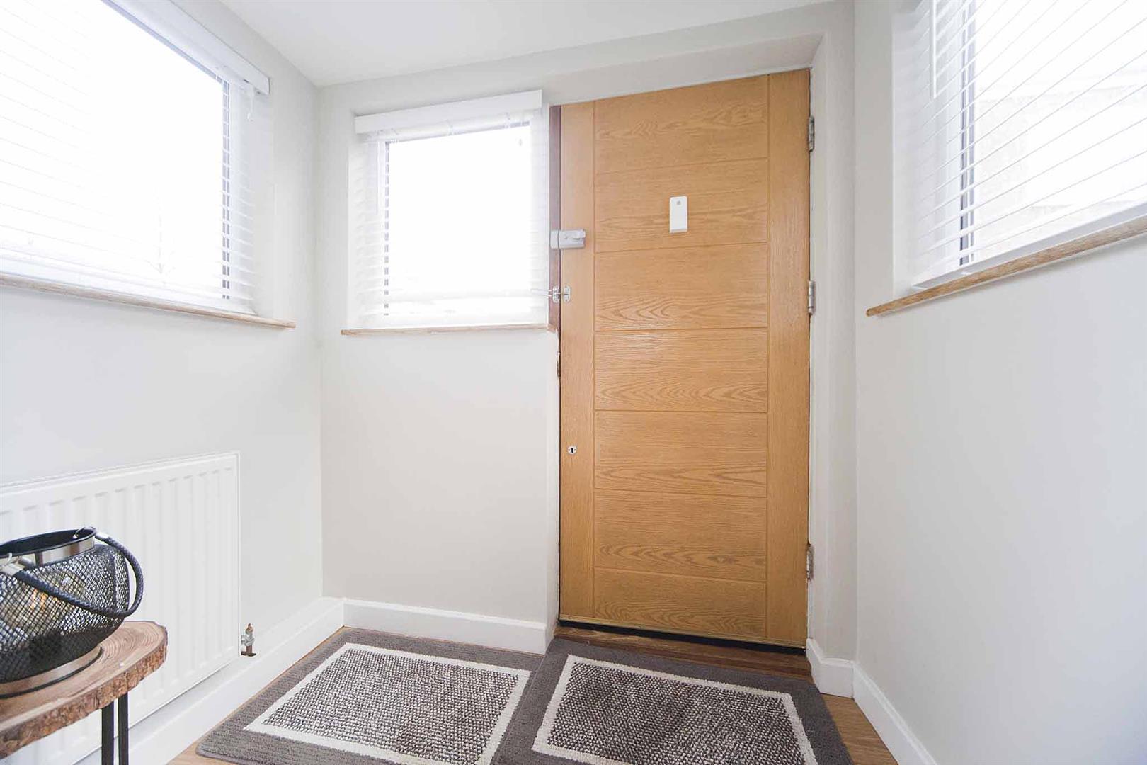 Well presented frontage, walled garden with artificial turf, log store, porch entry.