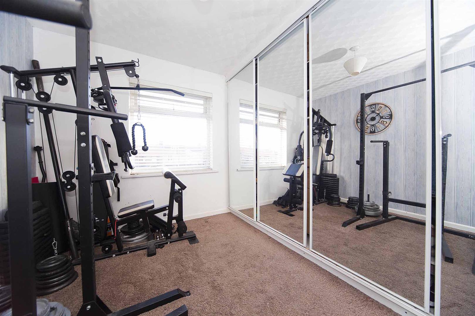 Bedroom two is another double situated to the rear with mirrored sliding fitted wardrobes, modern decor.