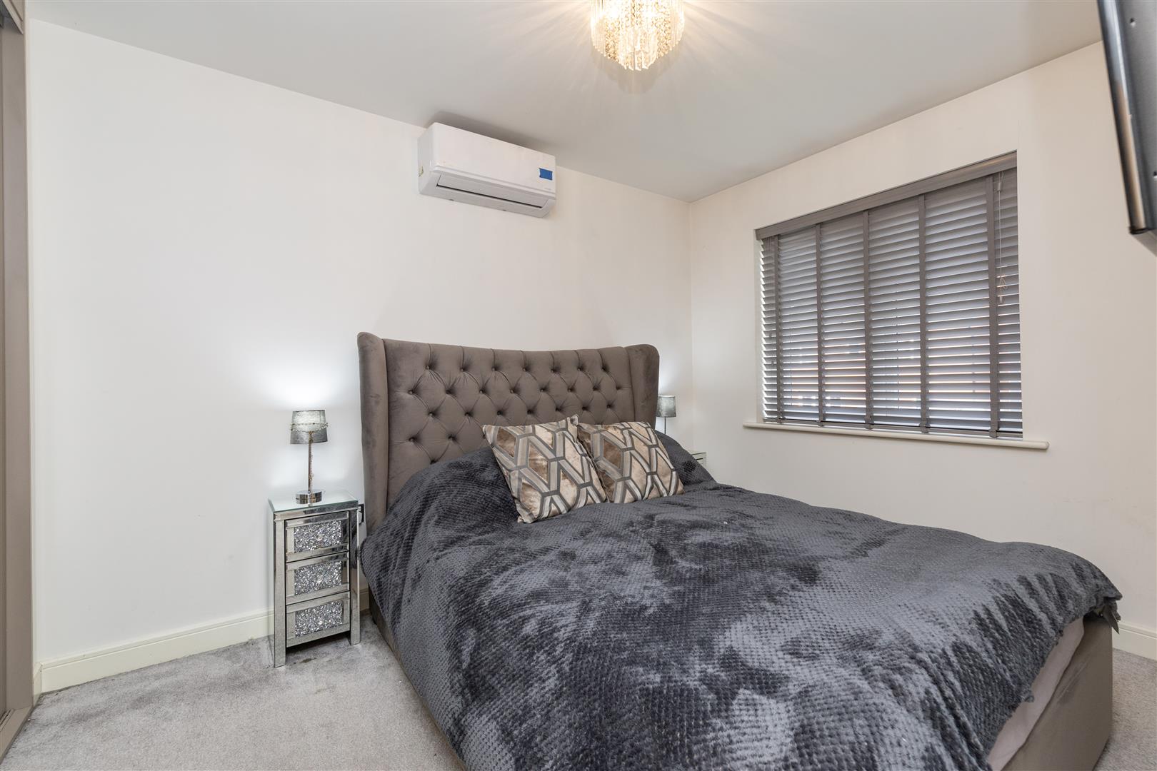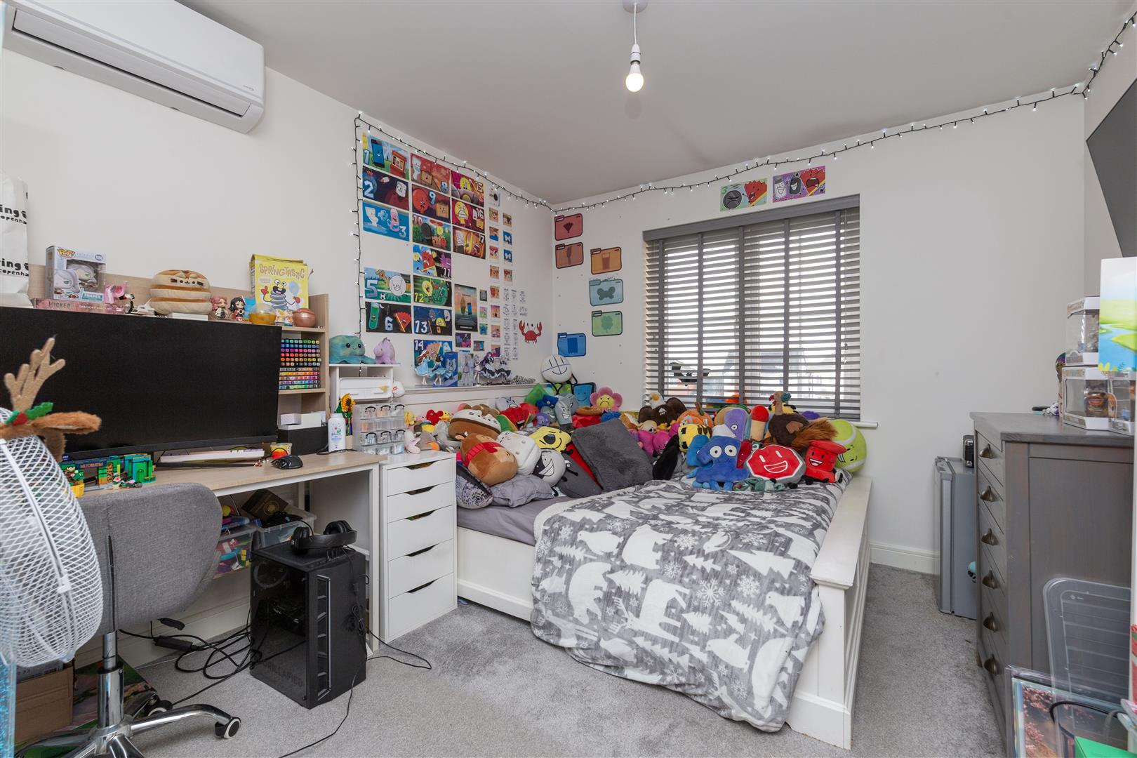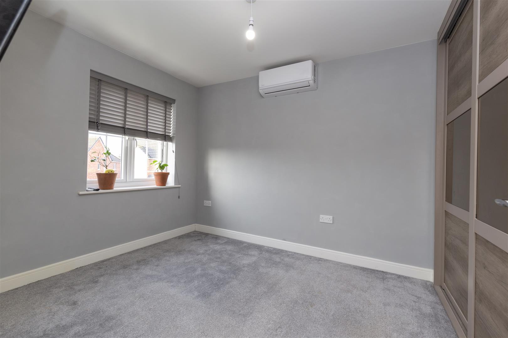The space invites you toward the open family lounge, which is flooded with natural light from the large patio doors. There is a striking modern electric feature fireplace with grey granite surround and mantel for an excellent focal point. An additional walk-in storage cupboard offers a cloakroom space. For warm weather this room has been recently fitted with a discretely wall mounted, remote control air conditioning unit. An extra-large window flags the patio doors which lead out into the rear garden. Clean bright décor throughout. The carpeted stairs with wooden balustrade and painted spindles lead to the first floor accommodation. To the first floor is a pleasant landing area with loft access, access to all four bedrooms including a convenient storage cupboard housing the gas combi boiler, fitted with spotlights to ceiling; Bedroom one is a large double, having fully tiled en-suite facilities including a large shower enclosure with mains shower, modern wall mounted sink and matching WC in white porcelain, rear facing window and tall wall mounted radiator. This bedroom has large sliding door wardrobes giving plenty of storage, also fitted with a air conditioning, grey fitted carpet, clean decor and access to part of the loft. Bedrooms 2 & 3 are generous doubles, both benefitting from fitted air conditioning units and beautiful sliding door wardrobes, both have windows fitted with blinds, one to the front and the other to the rear, fully carpeted in plush grey and bright neutral décor throughout. Bedroom 4 is a smaller double room, currently fitted as an office space with desks and storage shelves, it has a rear facing window fitted with blinds, fully fitted carpet and clean bright décor. The family bathroom with modern white suite, grey tiled walls and tiled floor, includes bath with mains shower facilities, softy close WC and sink with vanity unit, including a window to the front façade and heated towel rail. Externally, the large rear garden laid to lawn, is extremely secure with a full wooden fence, is an excellent space for relaxing and/or entertaining guests. The patio leads to the rear entrance of the garage accessed through a rear door, this space offers space for a number of uses, this garage has been fitted with hard wearing carpet, has heating and water with built in shelving, an ideal workshop and/or office space, to the front of the garage is a roller door opening onto the multi car private driveway. This impressive home has an EPC rating of B so is efficient to run and is warmed by a gas combi boiler. This property has been finished to a high standard throughout and would suite a range of buyers, with some excellent upgrades, ready to be enjoyed by its next owners. Call Igomove today to book your viewing and don’t miss out.