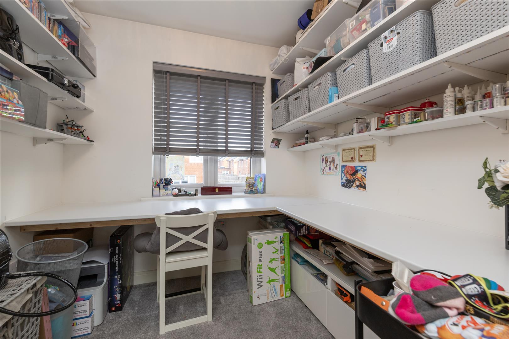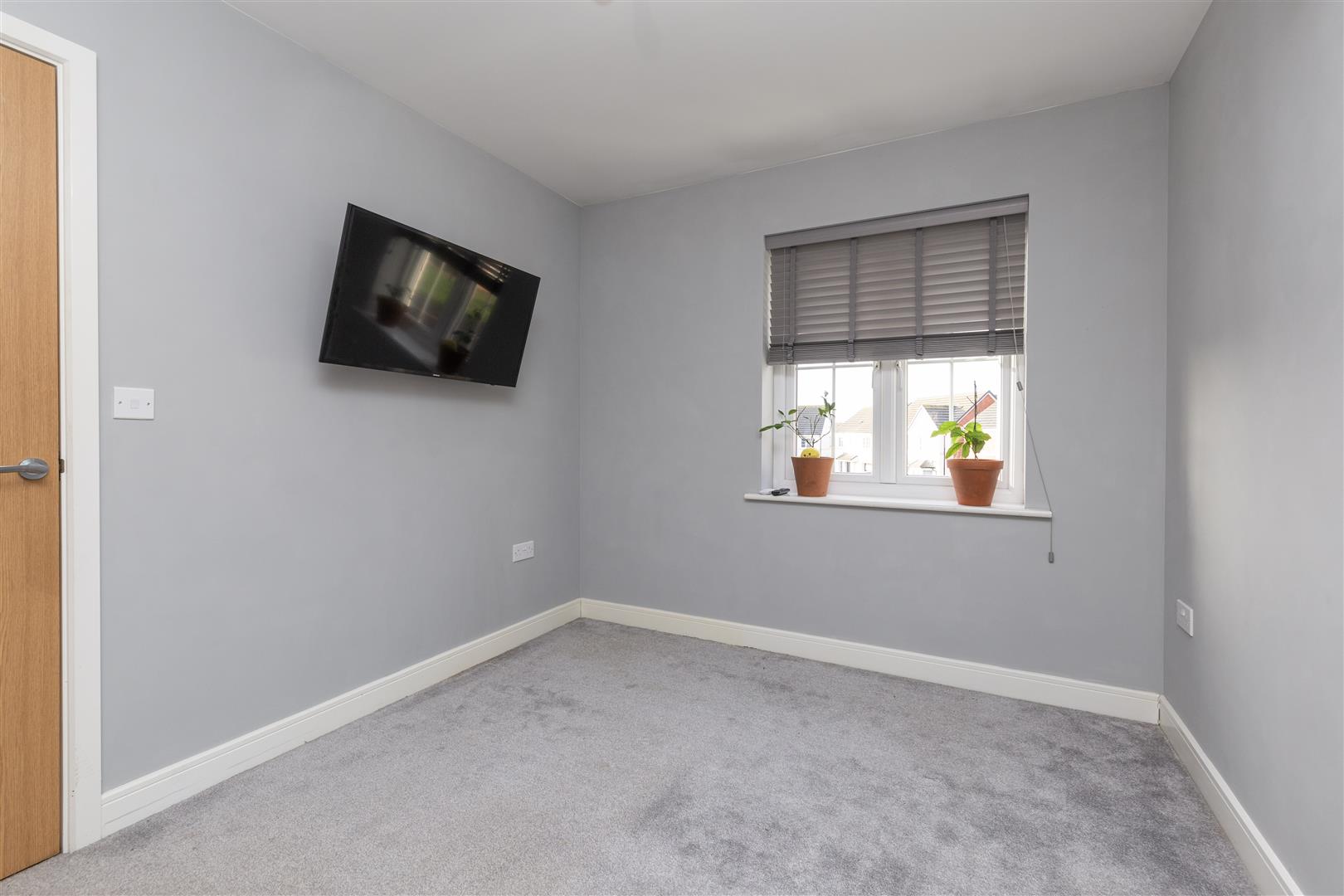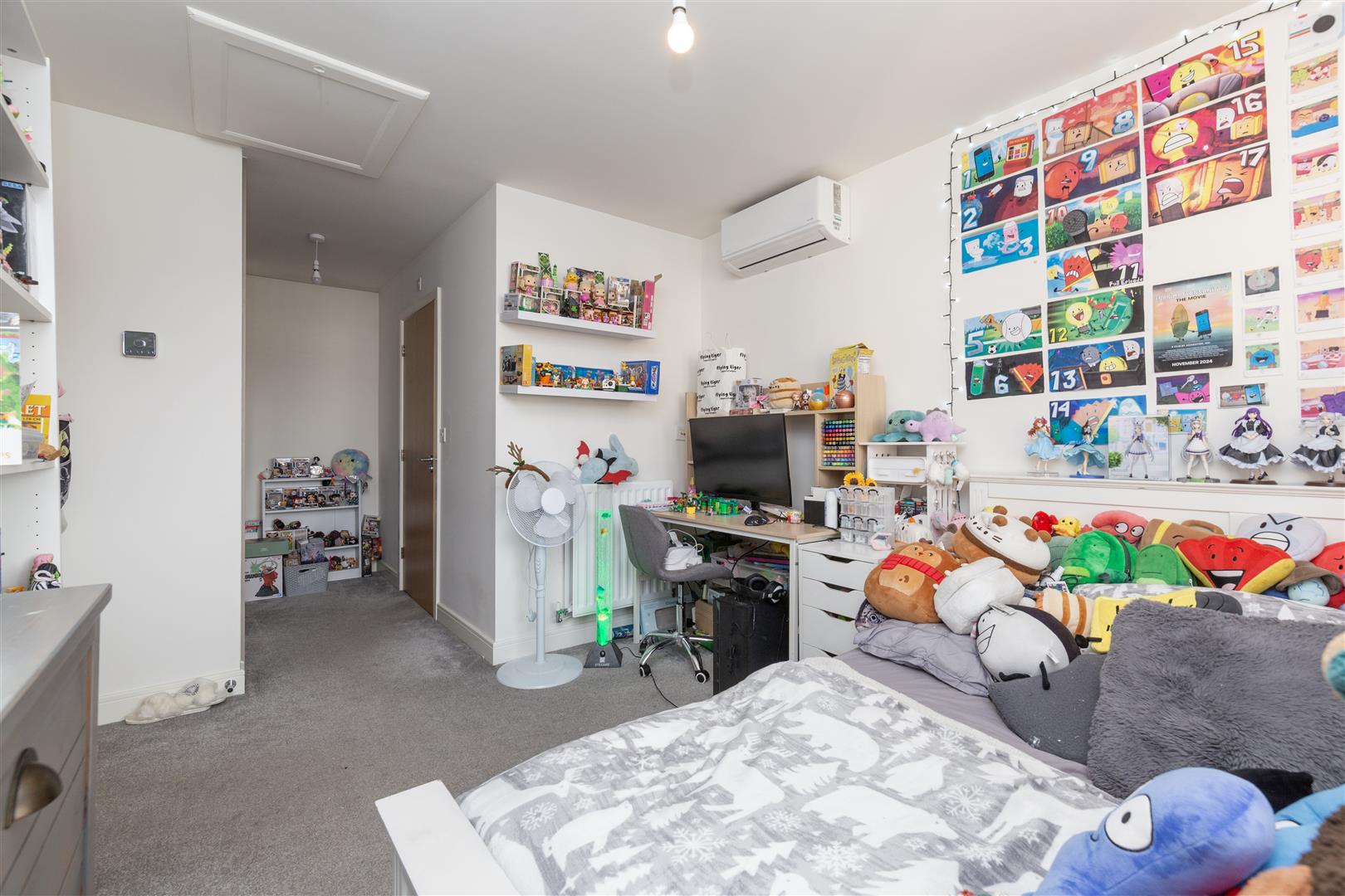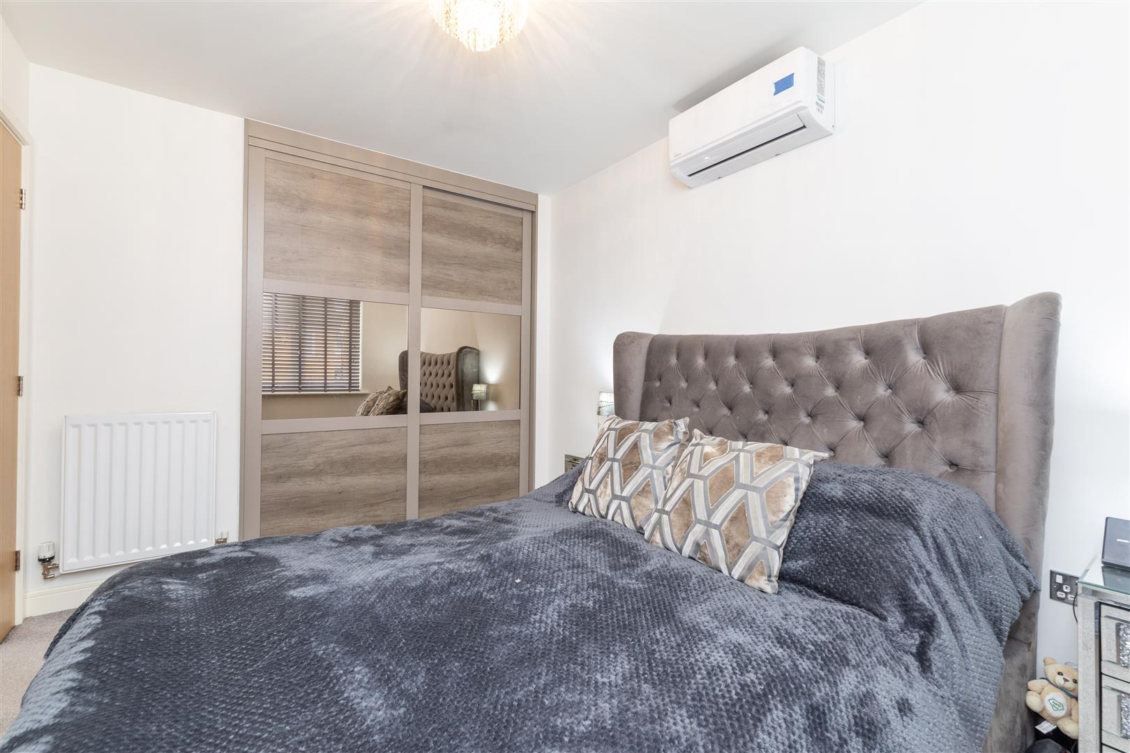 The space invites you toward the open family lounge, which is flooded with natural light from the large patio doors. There is a striking modern electric feature fireplace with grey granite surround and mantel for an excellent focal point. An additional walk-in storage cupboard offers a cloakroom space. For warm weather this room has been recently fitted with a discretely wall mounted, remote control air conditioning unit. An extra-large window flags the patio doors which lead out into the rear garden. Clean bright décor throughout. The carpeted stairs with wooden balustrade and painted spindles lead to the first floor accommodation. To the first floor is a pleasant landing area with loft access, access to all four bedrooms including a convenient storage cupboard housing the gas combi boiler, fitted with spotlights to ceiling; Bedroom one is a large double, having fully tiled en-suite facilities including a large shower enclosure with mains shower, modern wall mounted sink and matching WC in white porcelain, rear facing window and tall wall mounted radiator. This bedroom has large sliding door wardrobes giving plenty of storage, also fitted with a air conditioning, grey fitted carpet, clean decor and access to part of the loft. Bedrooms 2 & 3 are generous doubles, both benefitting from fitted air conditioning units and beautiful sliding door wardrobes, both have windows fitted with blinds, one to the front and the other to the rear, fully carpeted in plush grey and bright neutral décor throughout. Bedroom 4 is a smaller double room, currently fitted as an office space with desks and storage shelves, it has a rear facing window fitted with blinds, fully fitted carpet and clean bright décor. The family bathroom with modern white suite, grey tiled walls and tiled floor, includes bath with mains shower facilities, softy close WC and sink with vanity unit, including a window to the front façade and heated towel rail. Externally, the large rear garden laid to lawn, is extremely secure with a full wooden fence, is an excellent space for relaxing and/or entertaining guests. The patio leads to the rear entrance of the garage accessed through a rear door, this space offers space for a number of uses, this garage has been fitted with hard wearing carpet, has heating and water with built in shelving, an ideal workshop and/or office space, to the front of the garage is a roller door opening onto the multi car private driveway. This impressive home has an EPC rating of B so is efficient to run and is warmed by a gas combi boiler. This property has been finished to a high standard throughout and would suite a range of buyers, with some excellent upgrades, ready to be enjoyed by its next owners. Call Igomove today to book your viewing and don’t miss out.