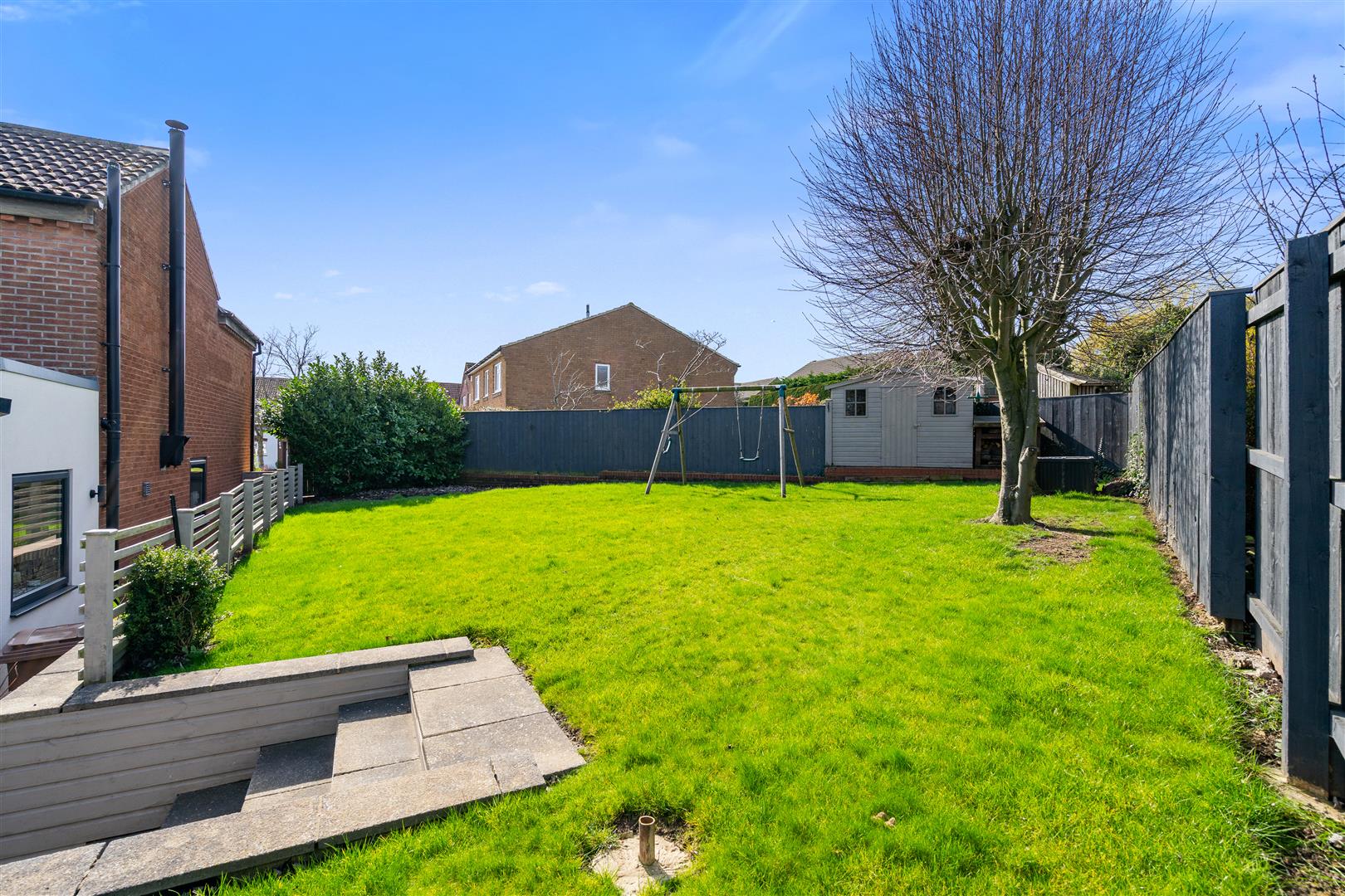 To the rear is a huge enclosed, well stocked mature garden laid to lawn with patio in differing levels.