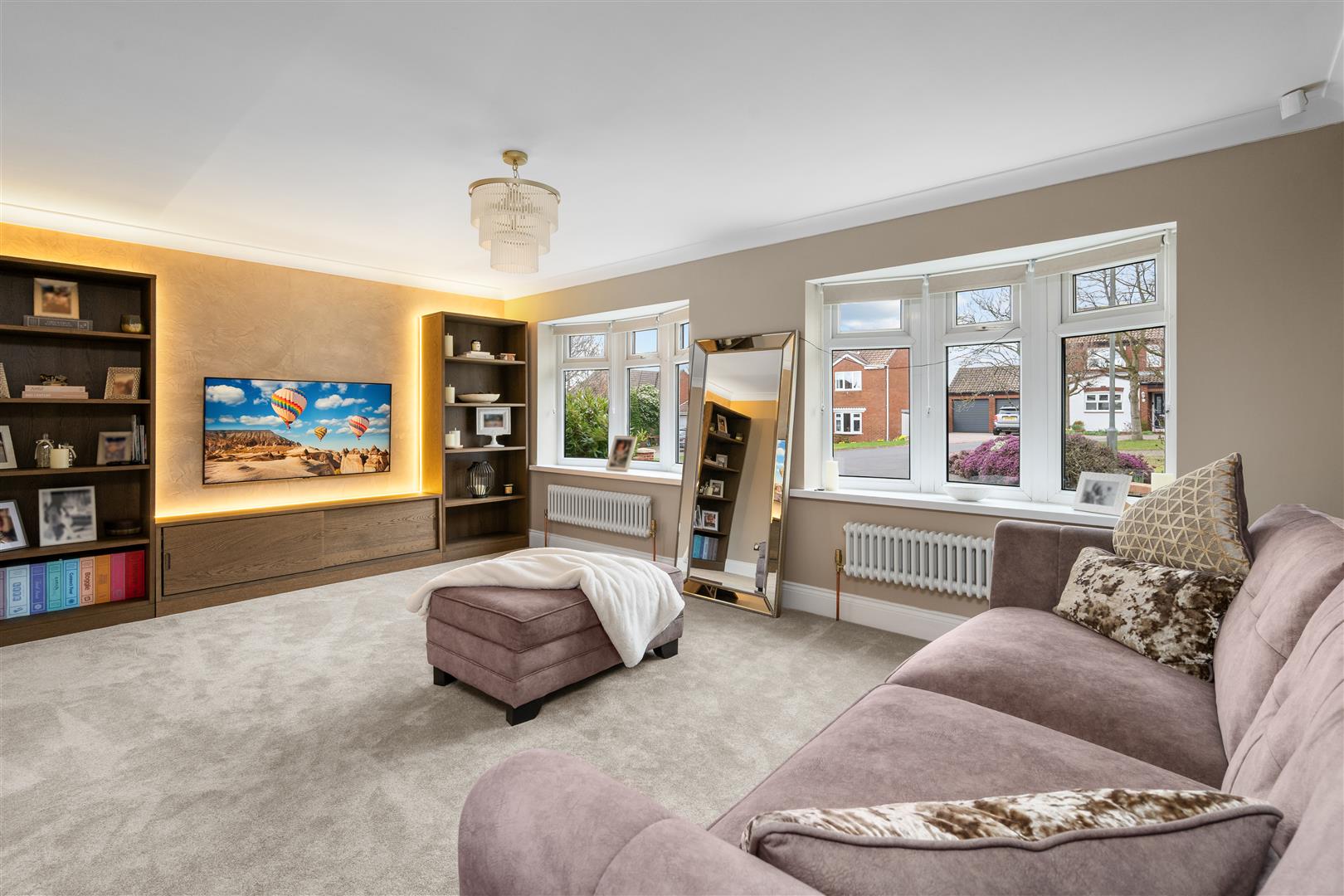 Beautiful lounge with twin bow windows to the front elevation and also with side elevation window, impeccably presented with beautiful decor including Venetian plasterwork.
