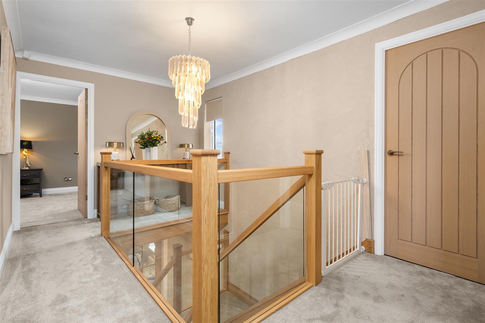 To the first floor galleried landing, there is a front elevation window providing natural light and a fitted storage cupboard.