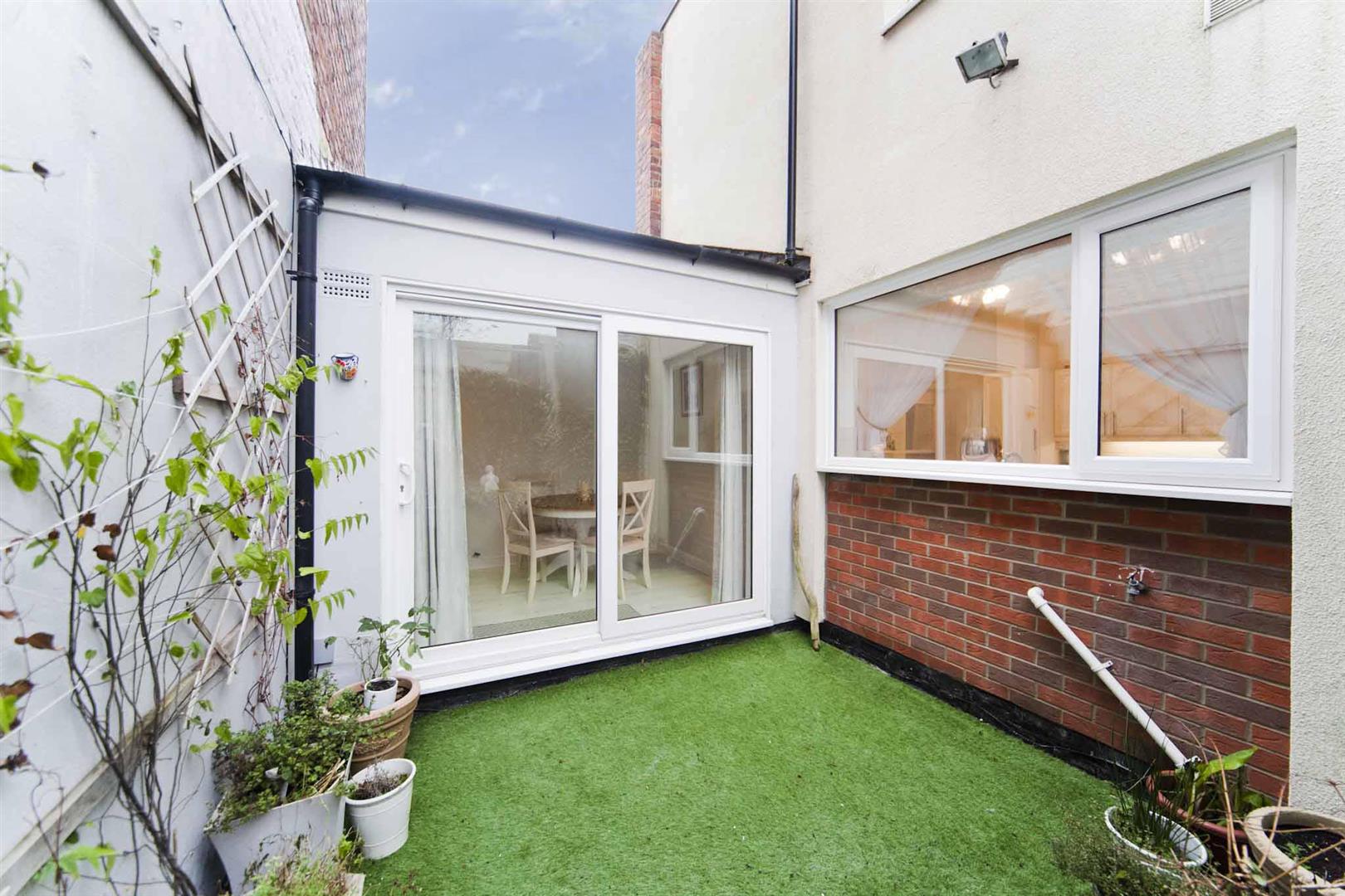 To the rear is enclosed courtyard with artificial turf, outside tap.