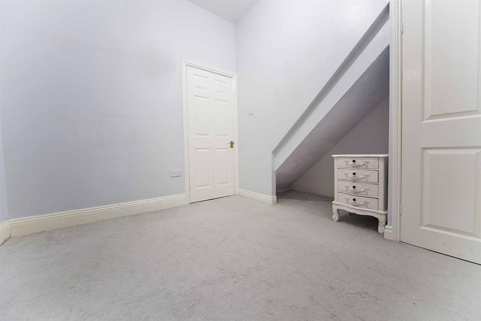 Bedroom two is also of double proportions situated to the rear with fitted wardrobe, fitted storage, feature fireplace, immaculate decor.