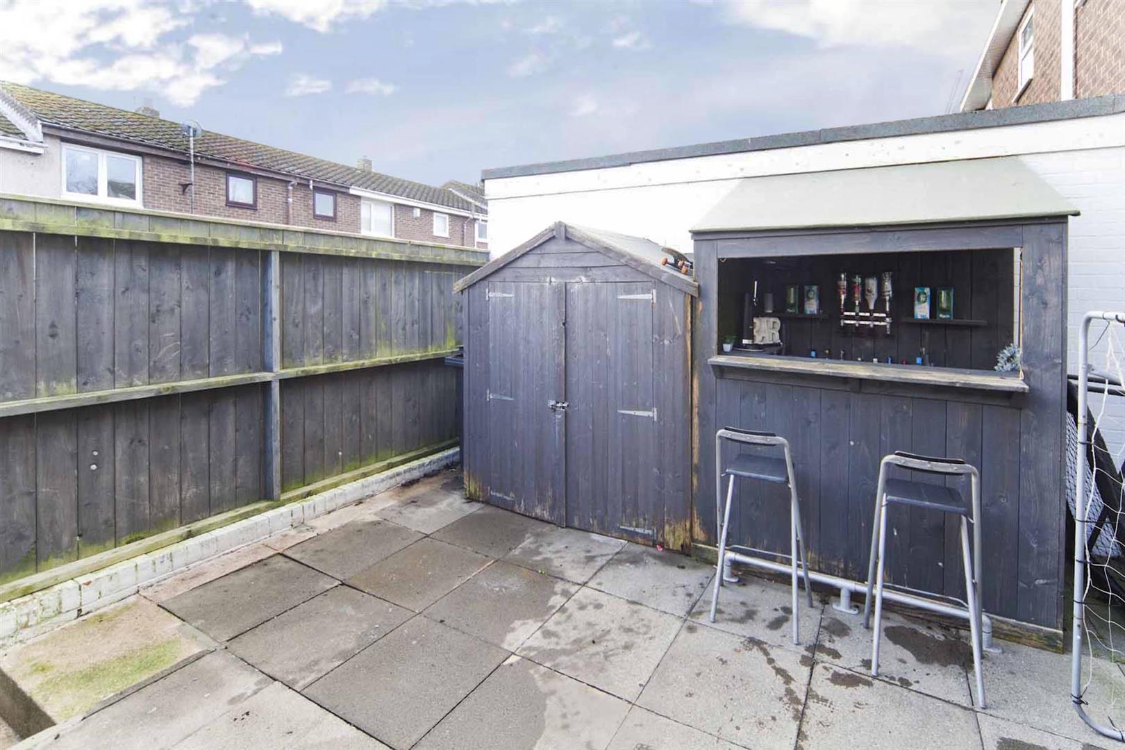 To the rear of the property is a good sized paved courtyard garden with home bar and garden shed.