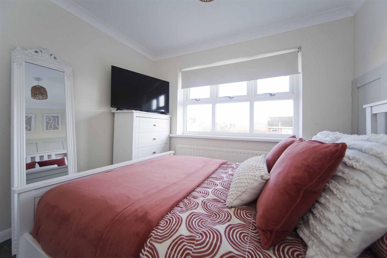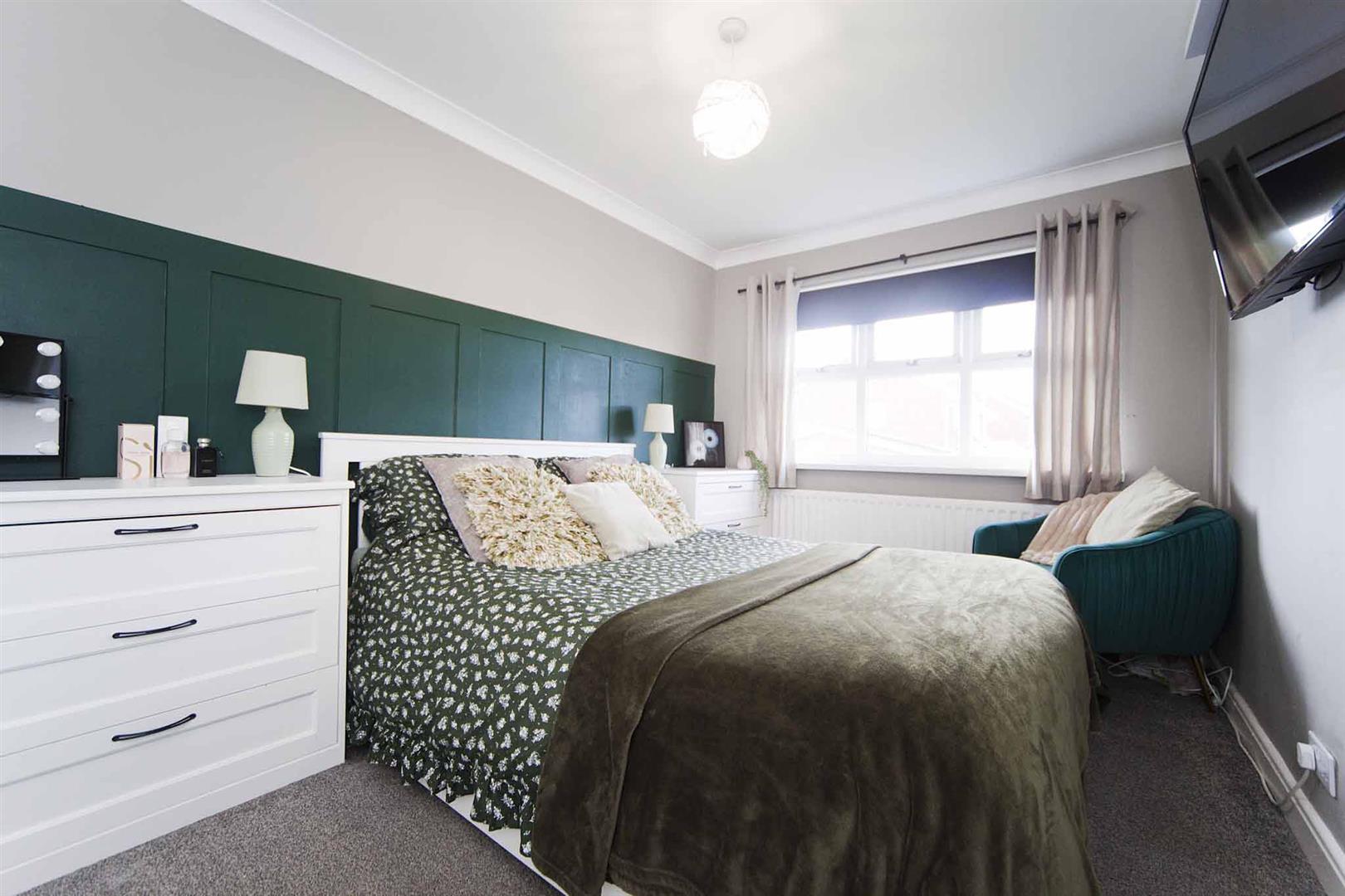 Bedroom two is a spacious double with custom wall panelling and excellent decor, decorative coving.