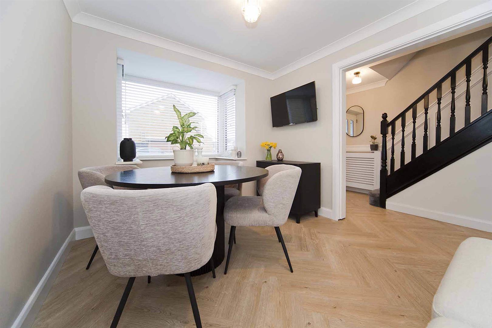 Excellent dining room with bay window to the front elevation, immaculate decor, decorative coving, stylish flooring.