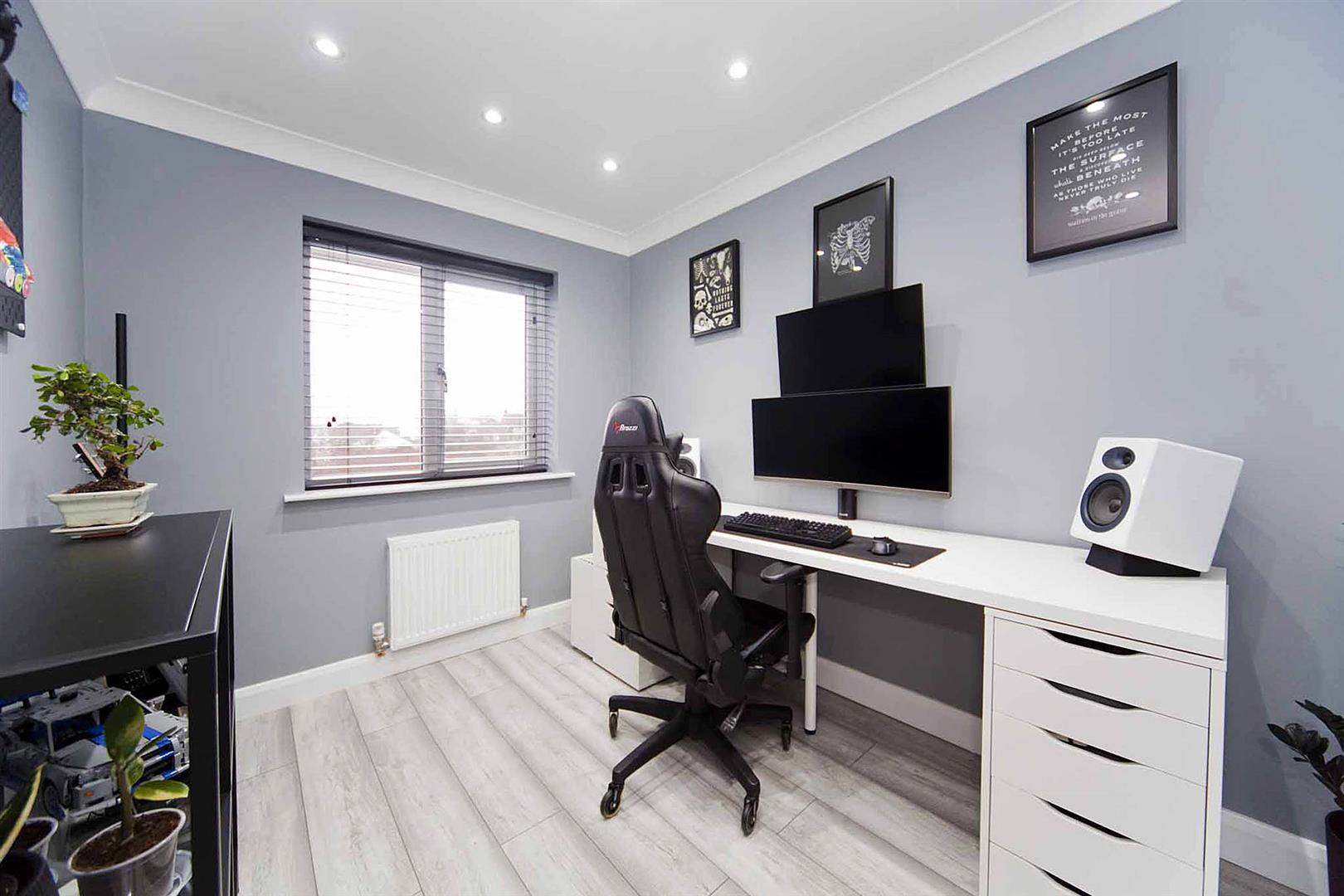 Bedroom four is a further double situated to the rear, contemporary decor, decorative coving, laminate flooring, recessed spotlights.