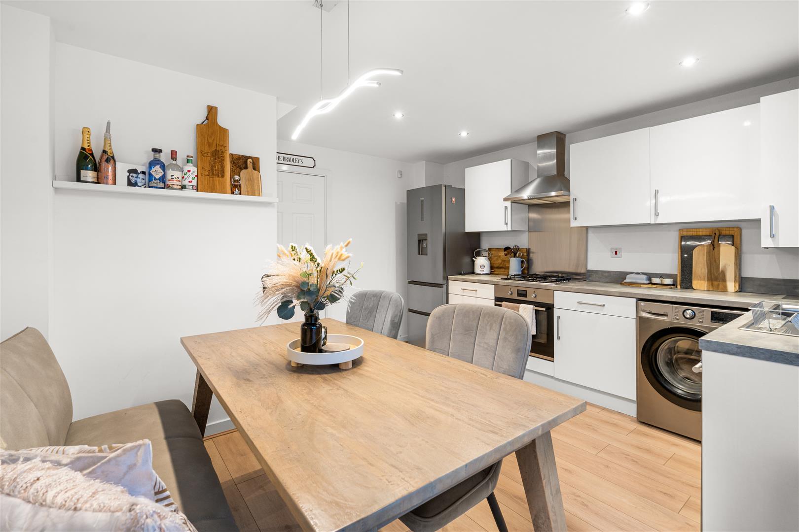 As you enter, the inviting hallway leads you to the open plan kitchen and dining area that provides ample space for relaxation and entertaining. The ground floor also features a cosy sitting room, designed to be both functional and welcoming.
