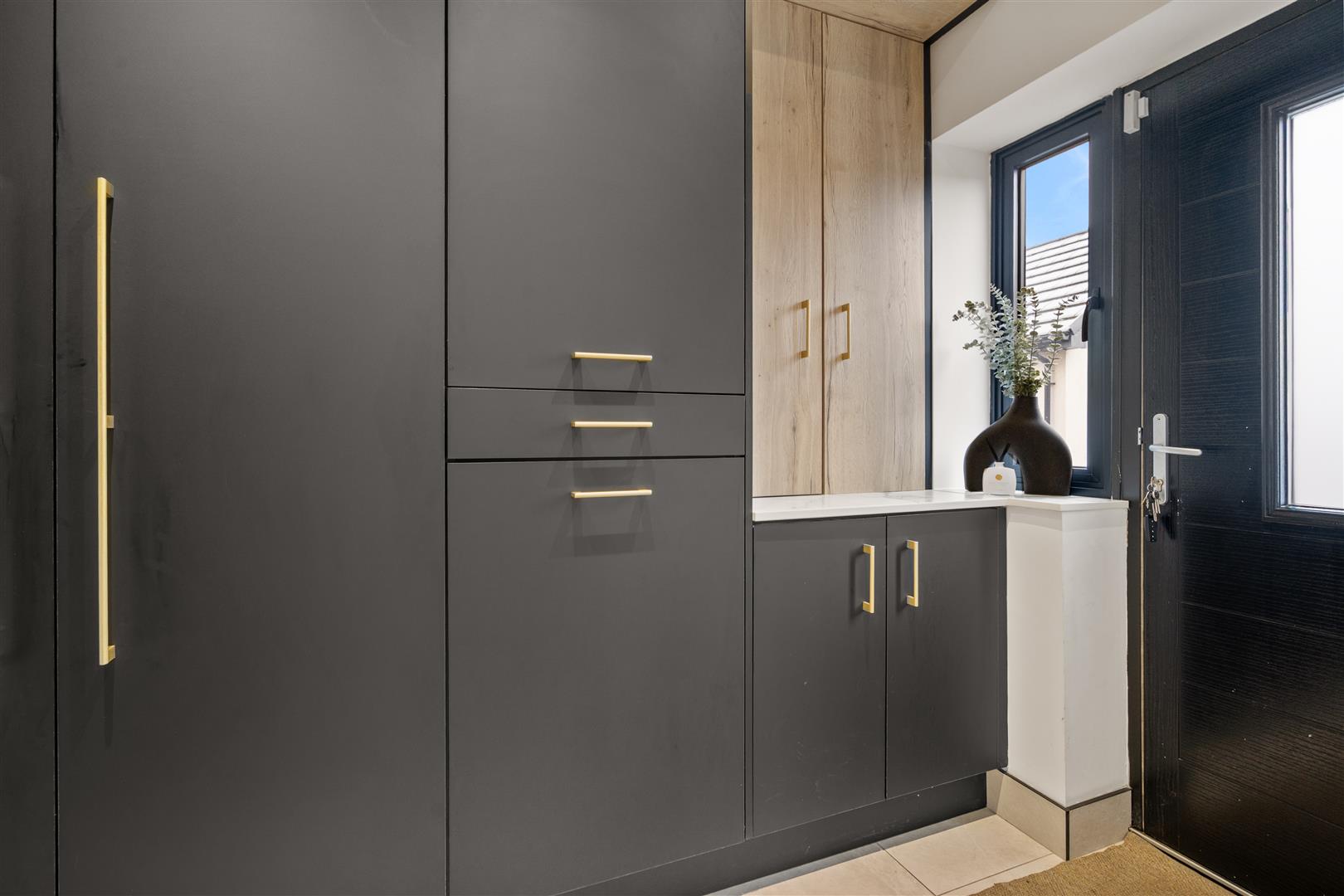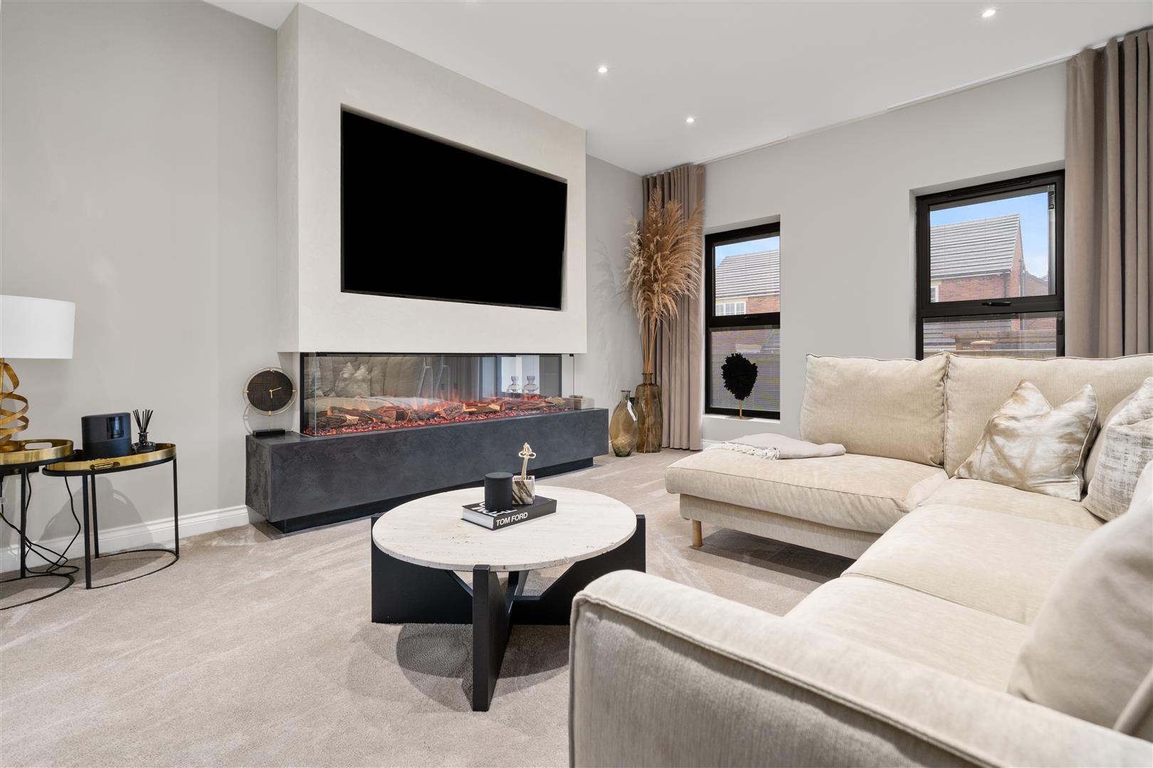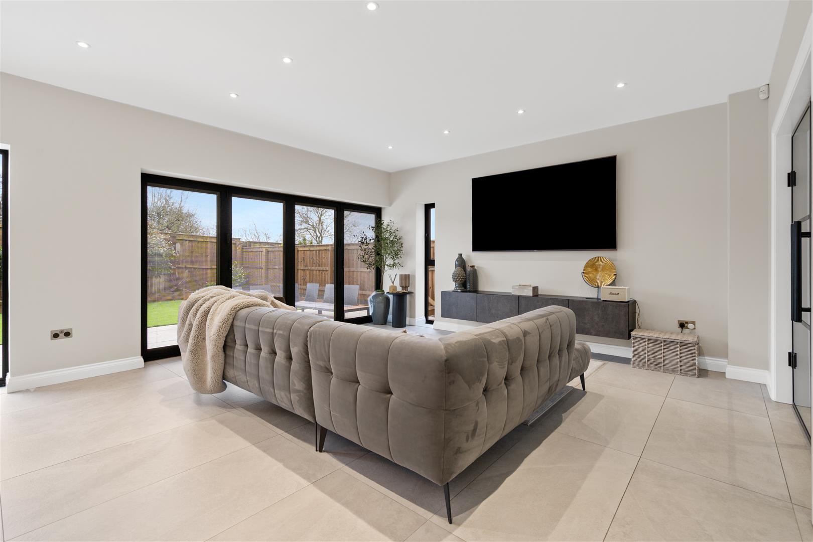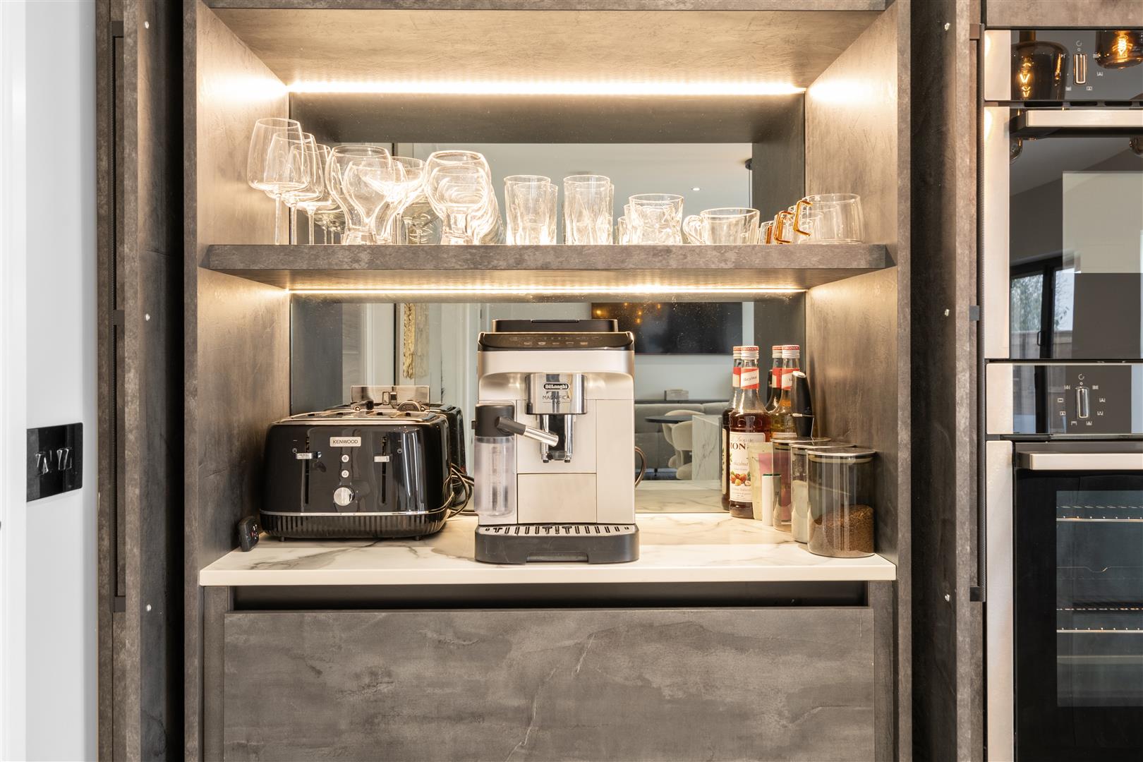 From the moment you step inside the grand entrance hall, the quality and craftsmanship are impossible to miss. To your left, a stylish lounge invites you to unwind in elegance. To the right, a chic study as well as a well-placed guest washroom next door. At the heart of the home is a spectacular, bespoke open-plan kitchen/dining space/family space. This bespoke kitchen has been completed with quartz worktops, a central breakfast island, and state of the art appliances, pantry with hidden doors as well as access into the spacious utility room with outdoor access which creates everyday convenience. Bi-fold sliding doors lead directly out to the landscaped rear garden which seamlessly blends indoor and outdoor living creating the ultimate hosting space. The inter-connected light-filled family lounge lies adjacent to the family area and completes this amazing social hub.