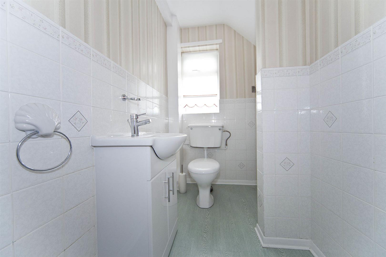 Guest cloakroom comprising WC and vanity wash basin. Fitted storage cupboard.
