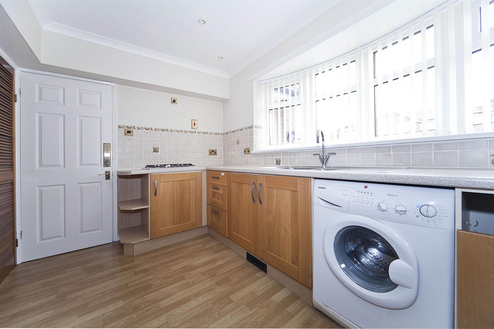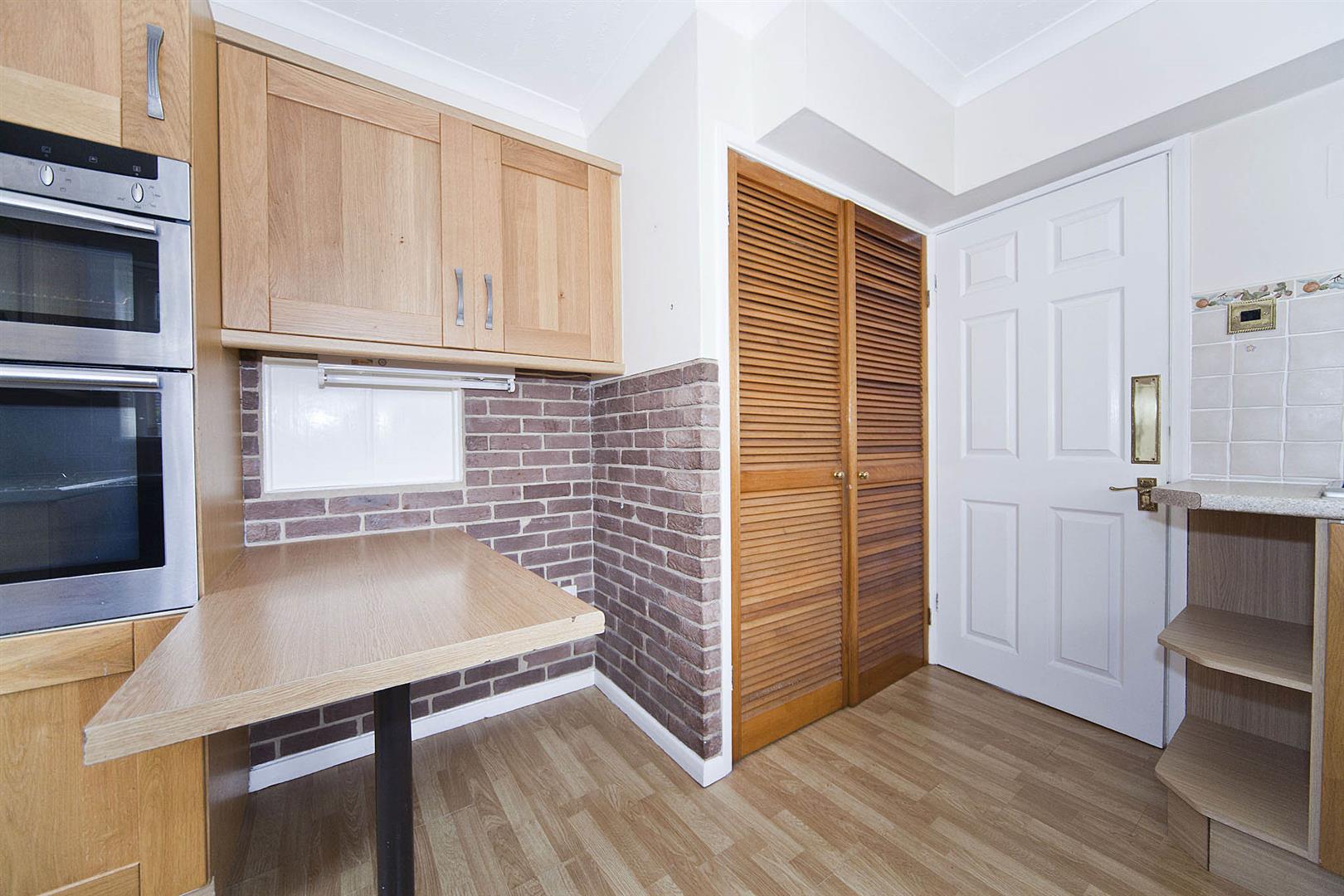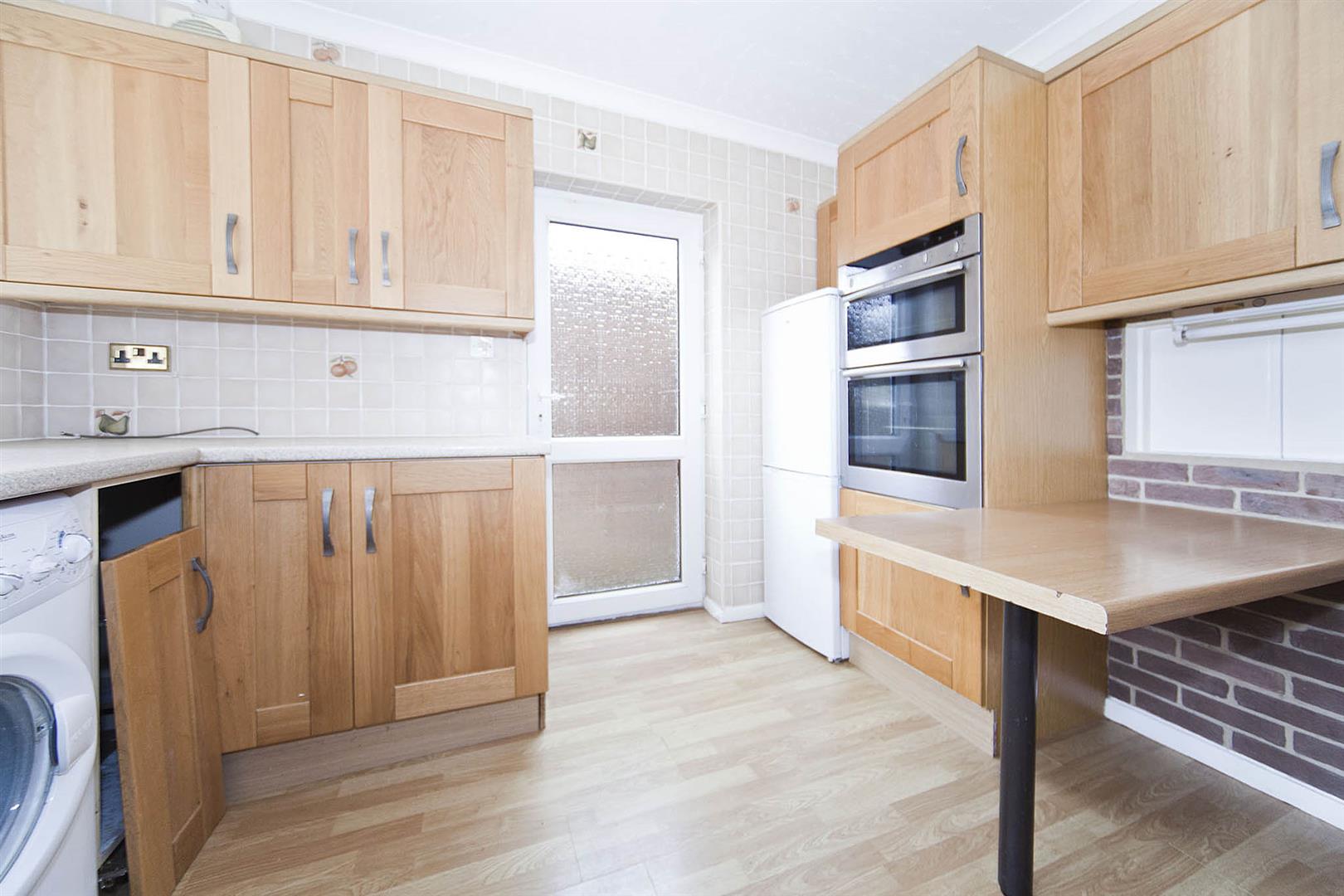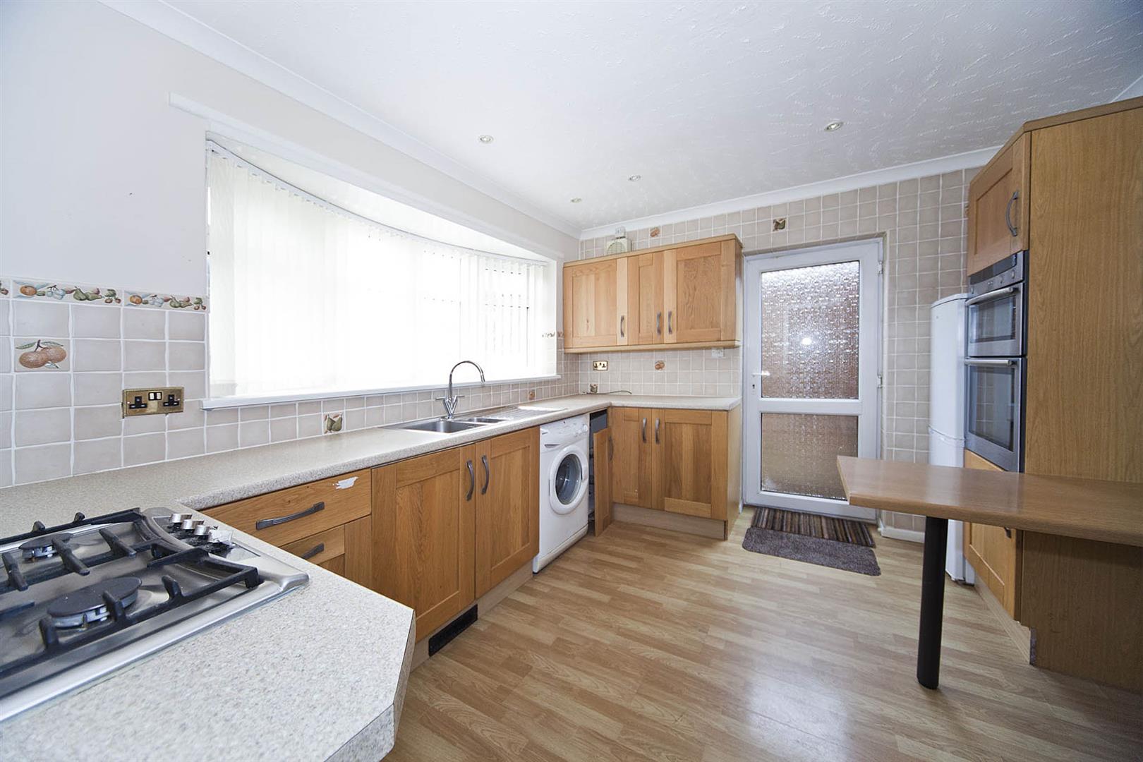 Good size kitchen situated adjoining the dining room enabling an open plan lay out if so desired, it is fitted with a range of wall, base and drawer shaker style cabinets, complimentary heat resistant surfaces, coordinating tiled backsplash, integrated double oven, integrated gas hob, stainless one and a half bowl sink with chrome mixer tap, plumbing for washing machine, space for appliances, breakfast nook, fitted storage cupboard, laminate flooring, decorative coving, glazed rear access door.