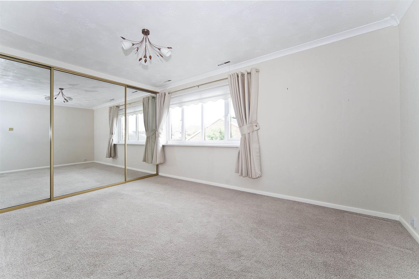 Bedroom one is a large double with wall to wall fitted sliding mirrored wardrobes and rear elevation window, neutrally presented with decorative coving.