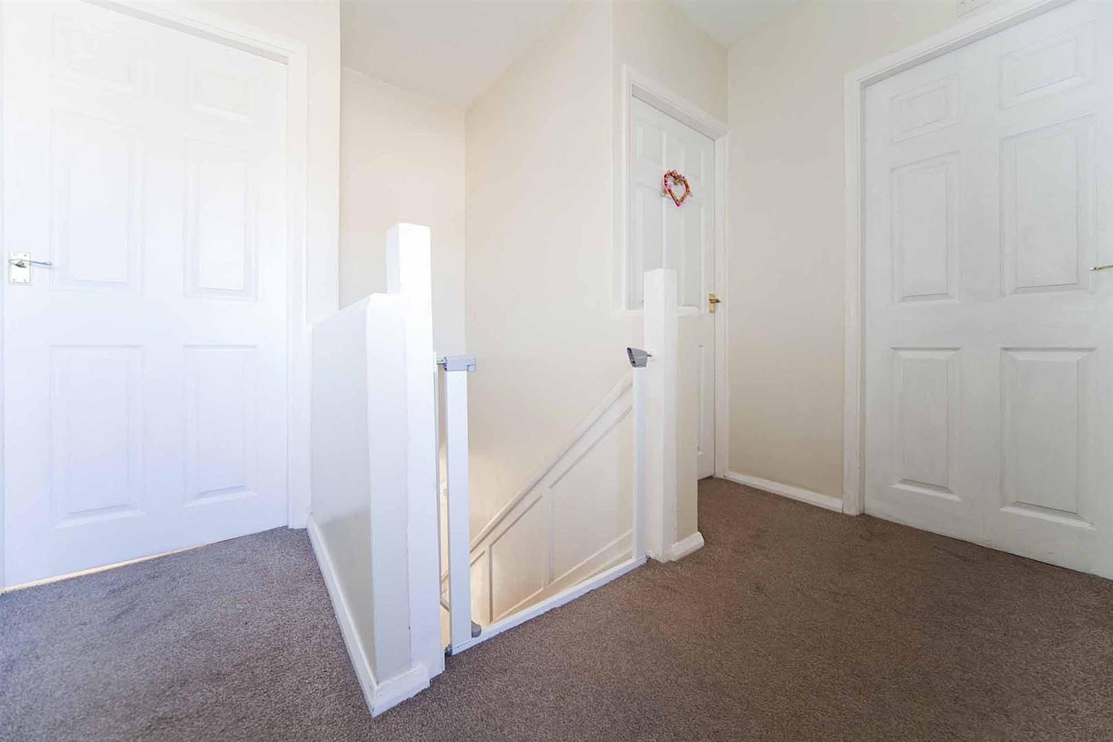 To the first floor landing, there is a rear elevation window providing natural light. There is also a fitted storage cupboard.