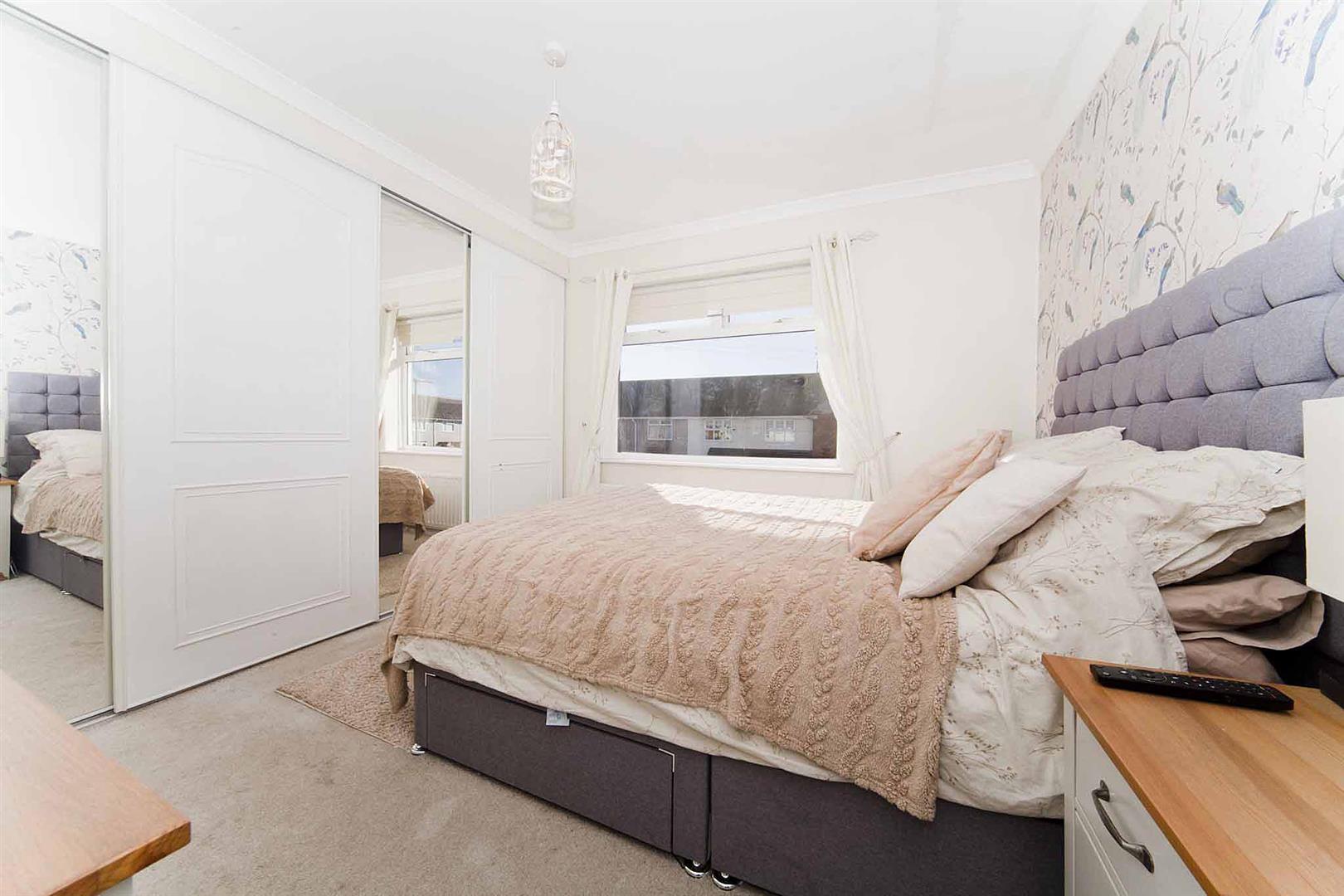Bedroom one is a large double situated to the front with wall to wall fitted contemporary wardrobes, stylish decor, decorative coving.