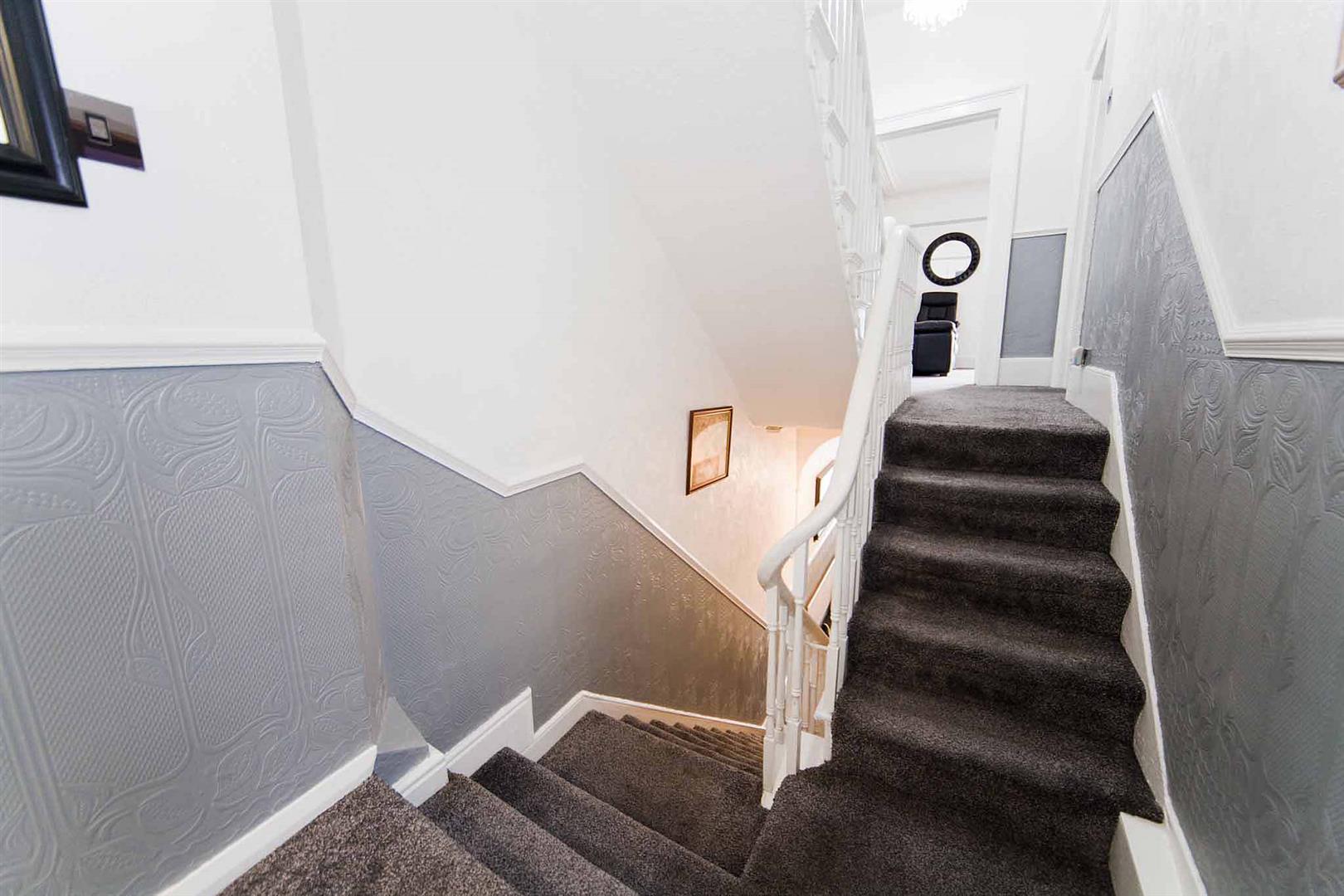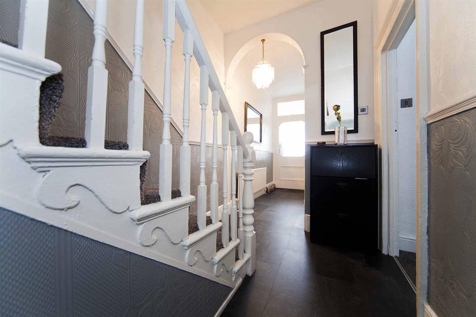 Impressive entrance hall with stairs to the first floor accommodation, dado rail, lincrusta walls.