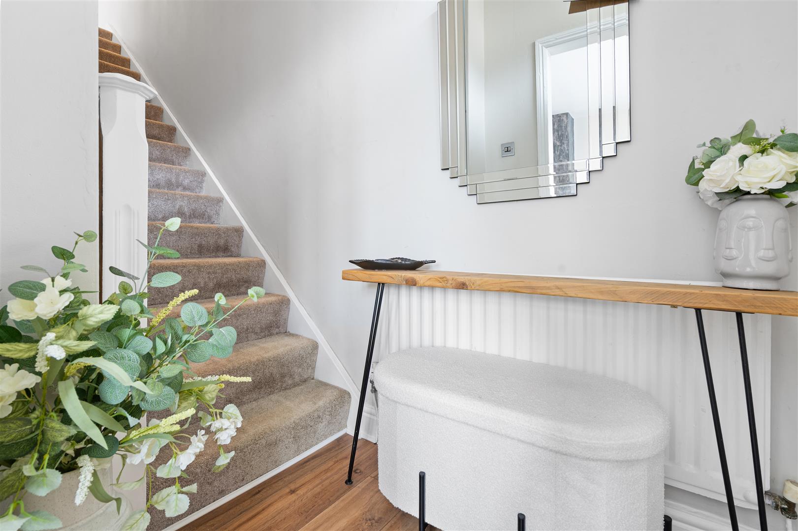 Entrance hallway with stairs to the first floor accommodation, laminate flooring, immaculate decor.
