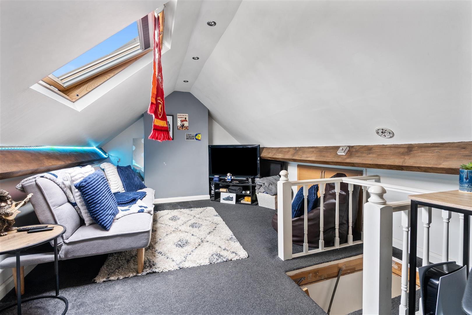 To the second floor, there is a large converted loft room accessed by pull down ladder with vaulted ceiling, recessed spotlights, eves storage, and Velux windows, modern decor, currently utilised as a games room/home office.